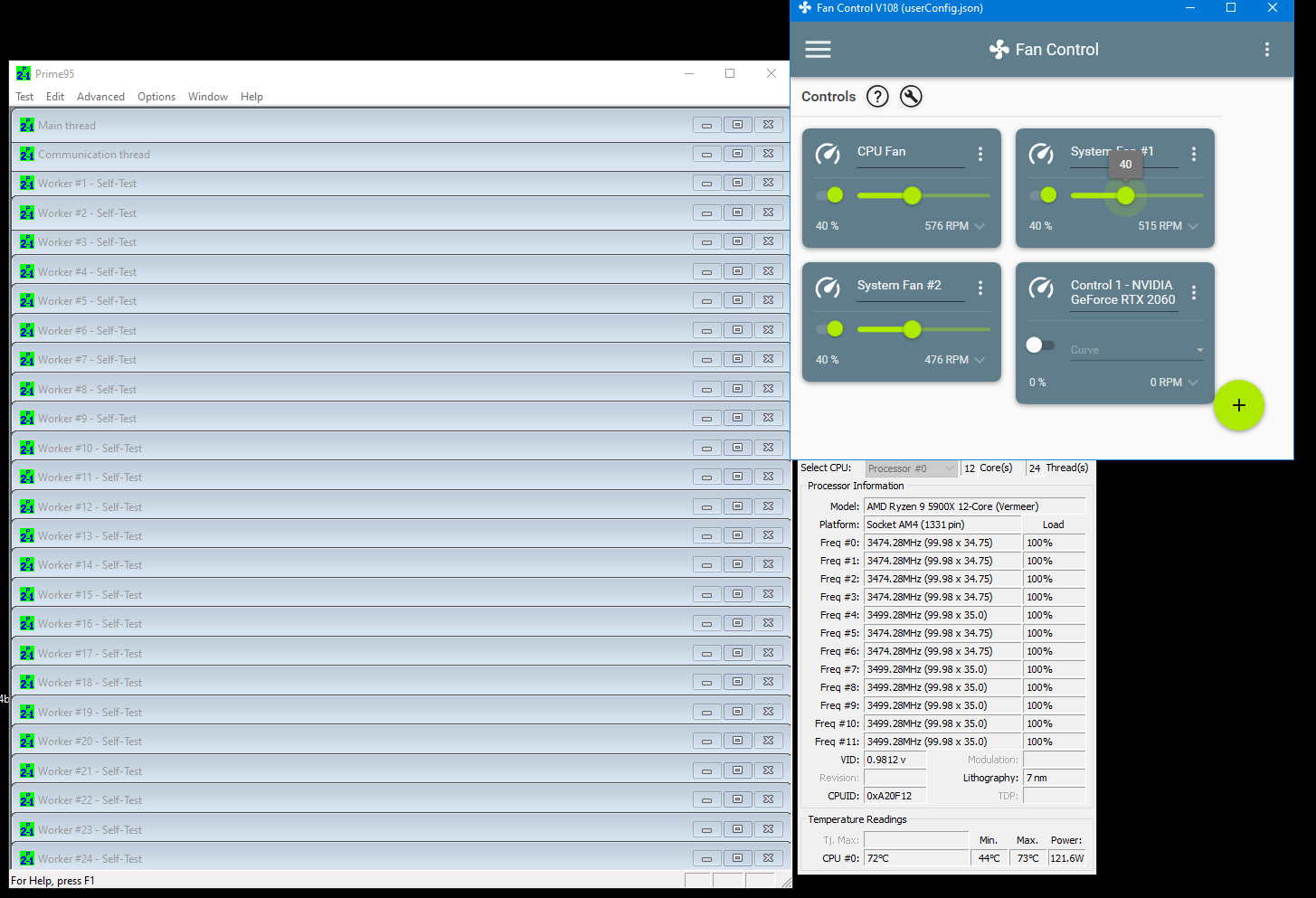 5900x mit prime 24(oder sinds 12 als Angabe in prime, auf jedenfall alle) Threads (max heat etc.) -> leise und kühl