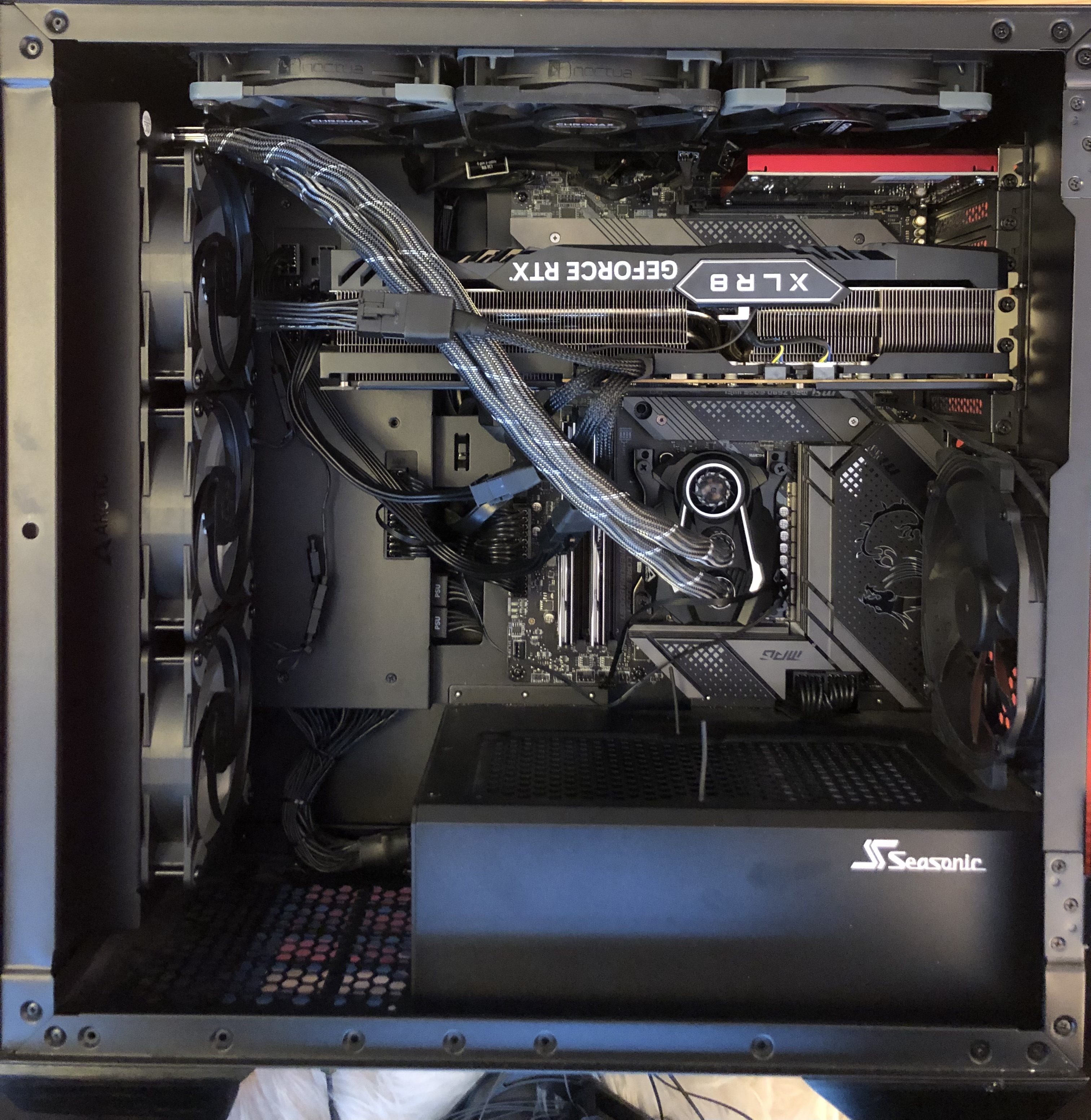 Meine Frage: Es geht um die drei obigen Lüfter, die hinter einem magnetischen Meshgitter liegen. Eingesetzt werden die Noctua A12x25. Diese sind im Pullbetrieb, um die Grafikkarte zu kühlen. Sollte die 420er Kühlung reinpassen, dann müsste ich wohl aus Platzgründen auf zwei reduzieren. Angedacht sind deshalb zwei 140er Kühler. Welche sind hier die Leistungsstärksten, die durch ein Meshgitter Luft ansaugen und im niedrigen Drehzahlbereich viel Power und v.a. kaum Lärm erzeugen?