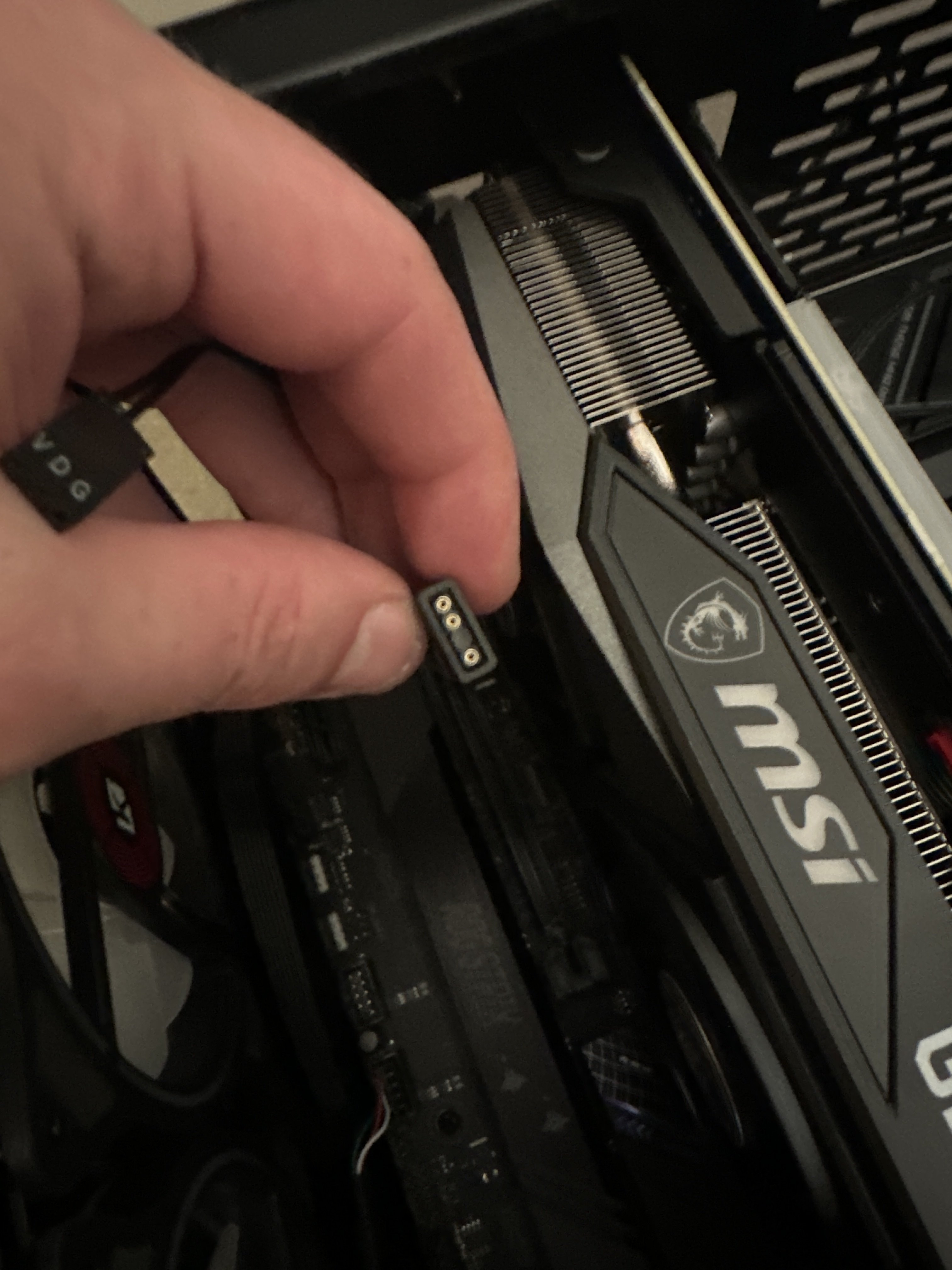 Das ist der für die 12V! Nicht darauf stecken!Nils19 schrieb:der RGB Anschluss hat bei mir 4 Pins und das andere bekomme ich nicht auf den lüfteranschluss der auch 4 Pins hat oder ich bin einfach dumm