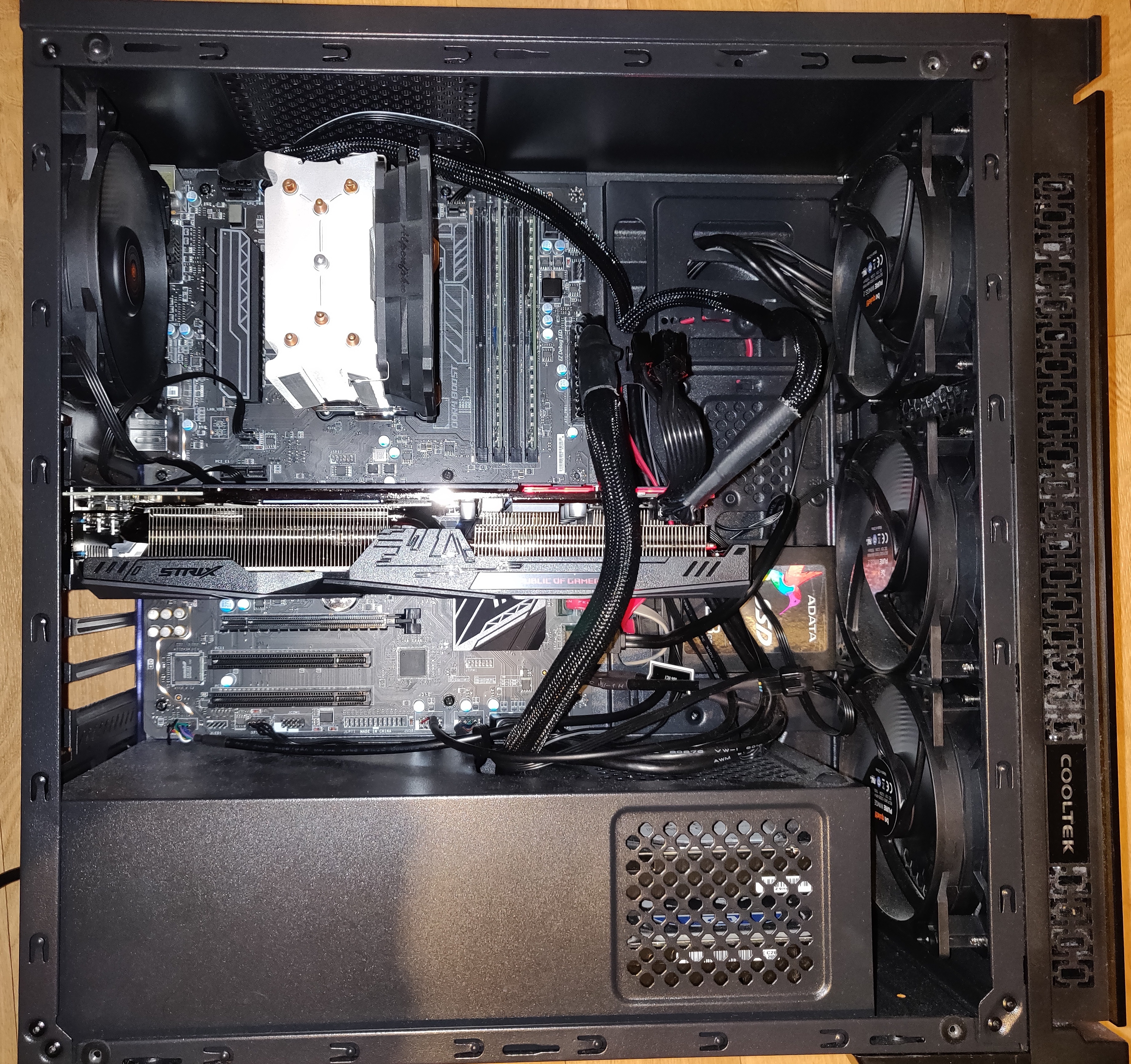 Das Problem ist jetzt, seitdem ich jetzt meine neue Asus ROG Strix RX 580 8GB verbaut habe, habe ich einen Luftstau. Die Karte ist halt größer als meine alte Nvidia GTX 1060 3GB von Gainward und das Gehäuse hat nicht all zu viel Platz.