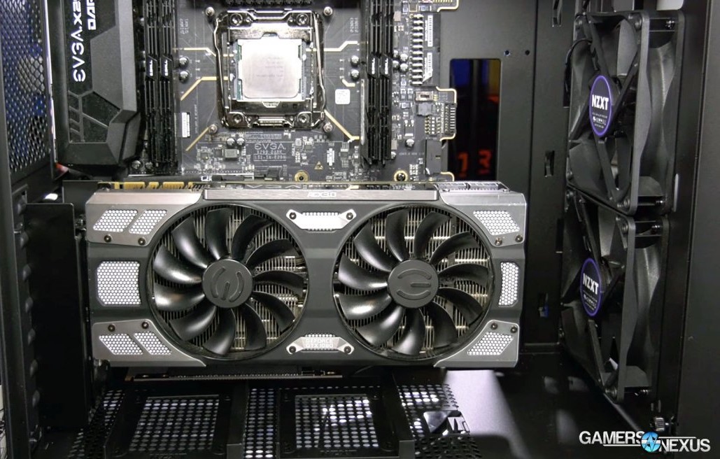 EDIT: Man könnte die GPU vertikal montieren mit entsprechenden Kit, so wie auf diesem Bild. Dann hätte die Luft eine Möglichkeit an den Seiten zu entweichen.