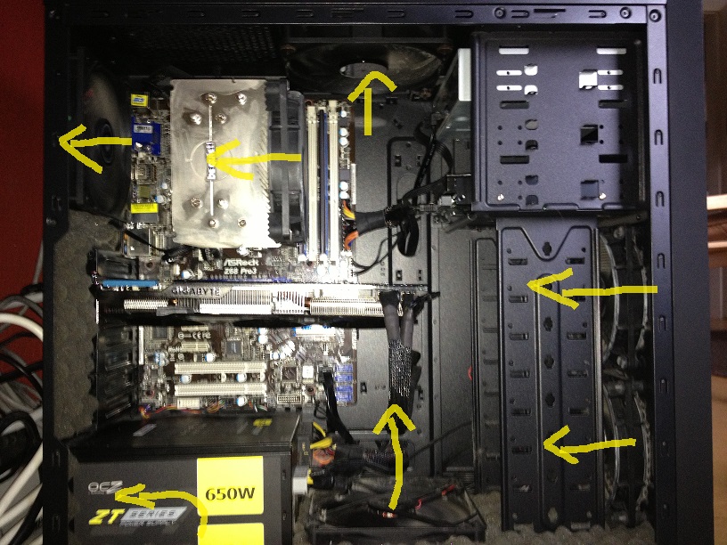 ich hab mitlerweile 6 Lüfter glaube ich im Gehäuse und glaube solangsam das der Luftstrom schlechter wird. Ich hab eine kleine Grakik und hoffe ihr könnt mir weiterhelfen und mir sagen ob alle Lüfter die richtige Puste richtung haben