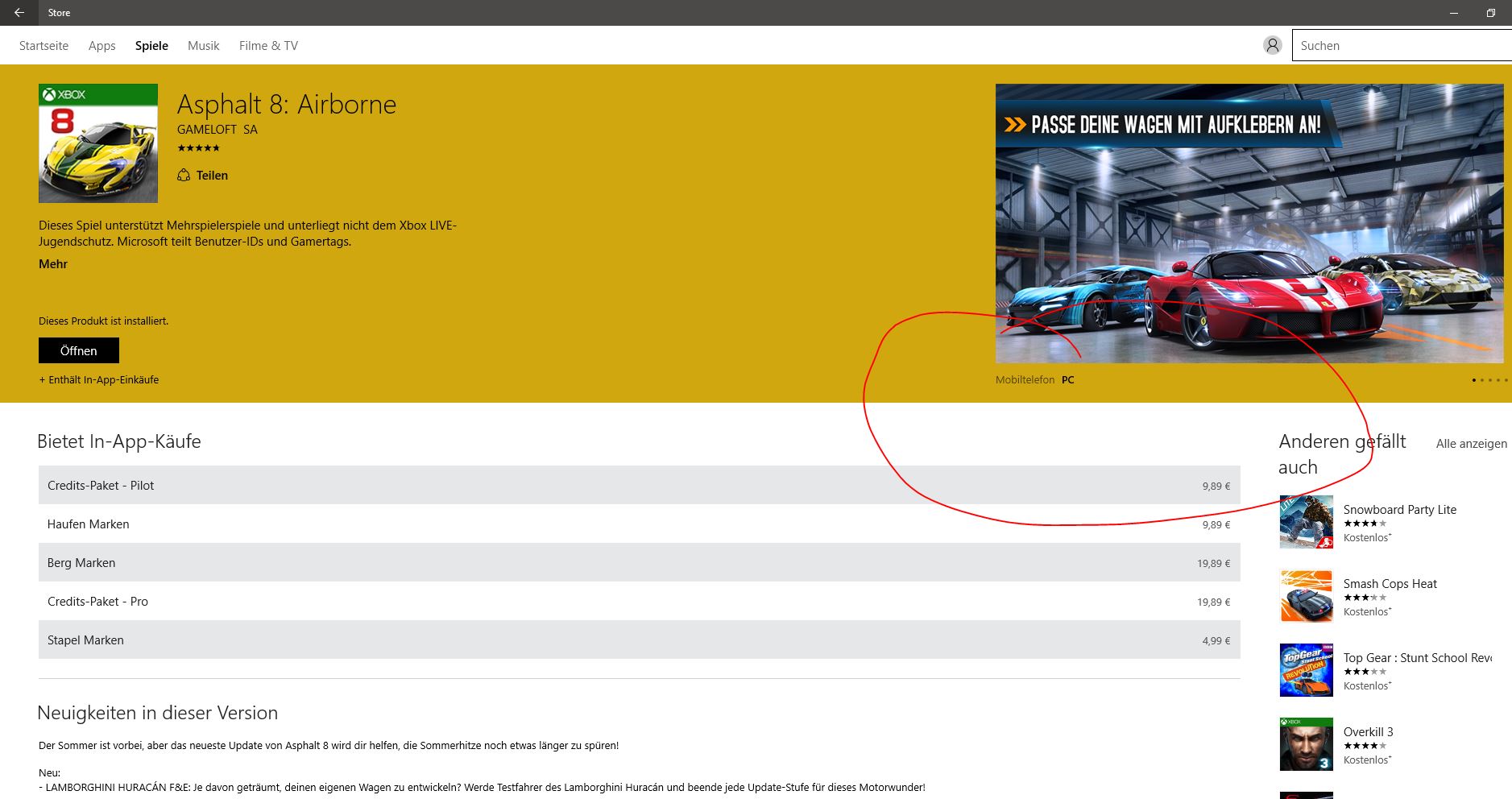 Bei Win 10 Mobile wird nur noch in der Appbeschreibung angezeigt Mobil/Andere Geräte.