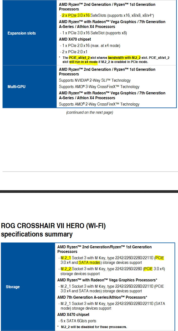 ich hätte eine Verständnisfrage bzgl. der Anbindung der M.2-Schnittstellen auf dem ASUS X470 Crosshair VII Hero bei Verwendung einer Ryzen CPU ohne iGPU (konkret ein Ryzen 2700X, ist bzgl. der Anbindung aber nicht so entscheidend).