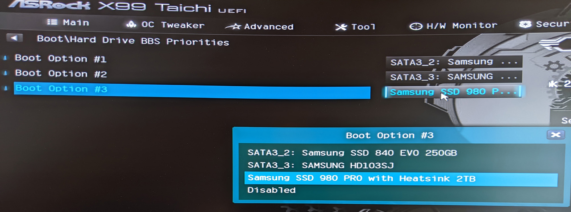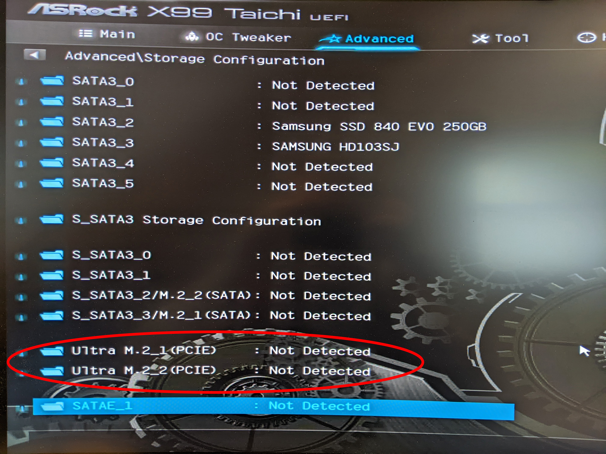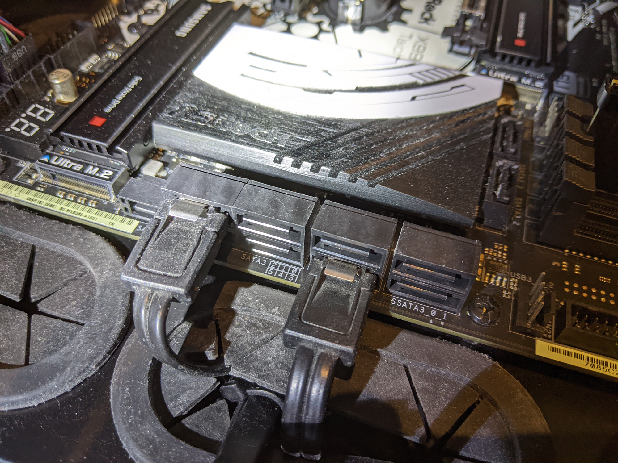 ...also habe ich meine alten Platten entsprechend umgesteckt (ich hoffe richtig - Bilder sind anbei). Leider half das auch nicht. Selbst wenn ich alle SATA Slots frei mache, bekomme ich nur eine NVMe SSD im BIOS angezeigt.