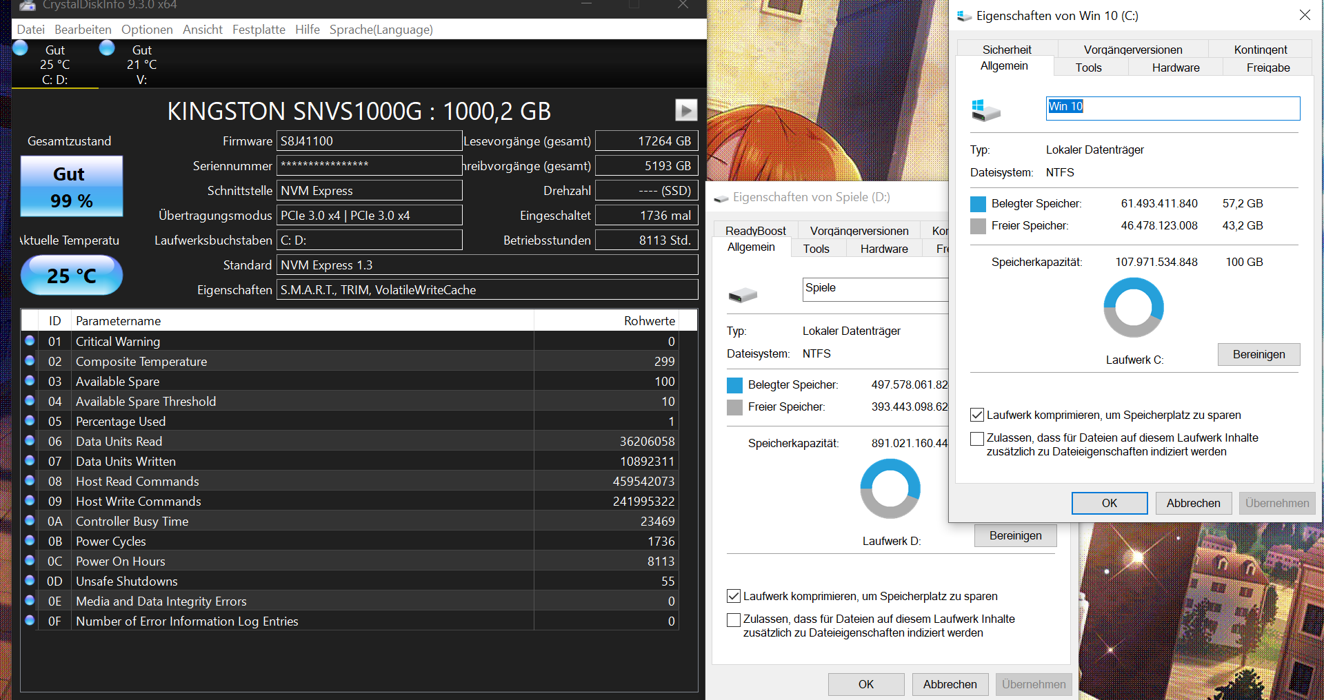- Im zweiten angeängten Screenshot hat sich die SSD kurz wirder gefangen, ging aber kurz danach wieder auf 100%.