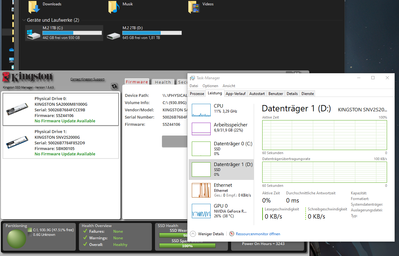 Meine Kingston NV1 - 1TB hat beispielsweise eine 240TBW. u. 2,100/1,700MB/s Lese/Schreib Geschwindigkeit.