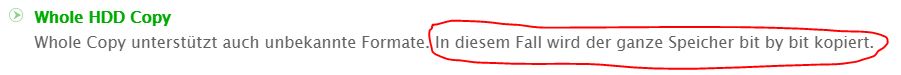 whole copy unterstützt auch unbekannte Formate.