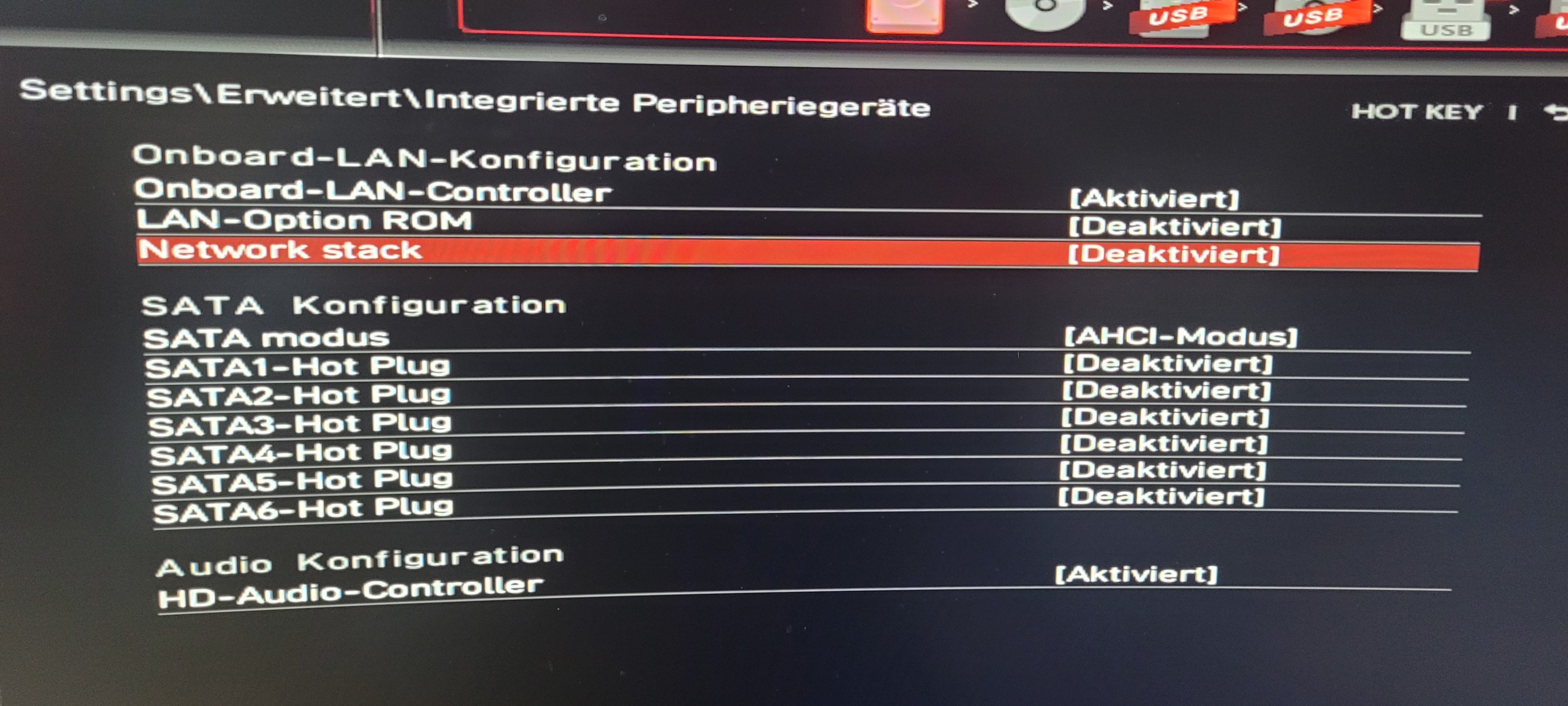 In der Bedienungsanleitung steht das ich den M.2 Port aktivieren muss im BIOS. Das sollte im Bild 2 passieren, da finde ich aber nichts. Dann würden Port 5+6 deaktiviert wo auch nichts dran angeschlossen ist.
