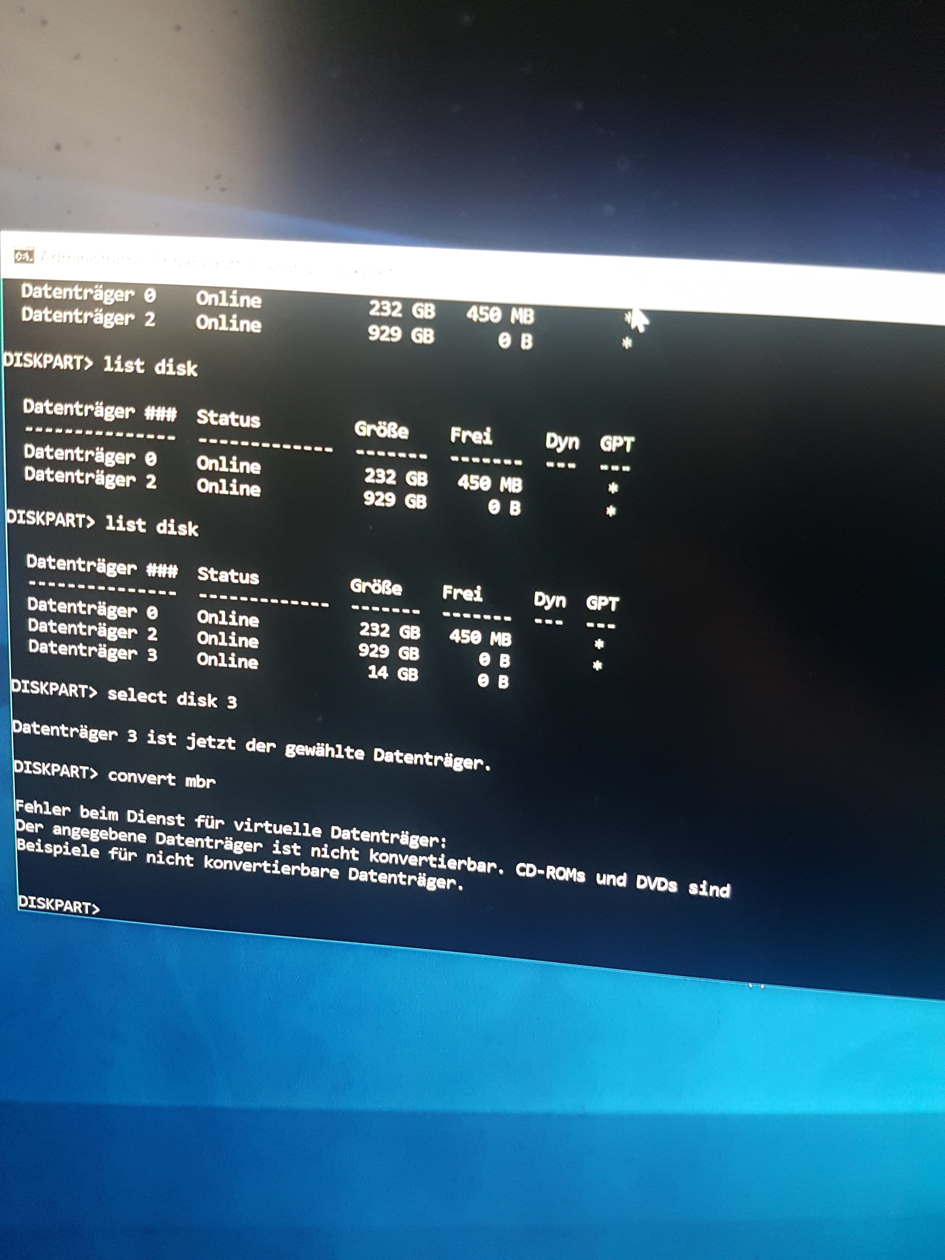 Ich schreibe dir nochmals die Befehle für DISKPART