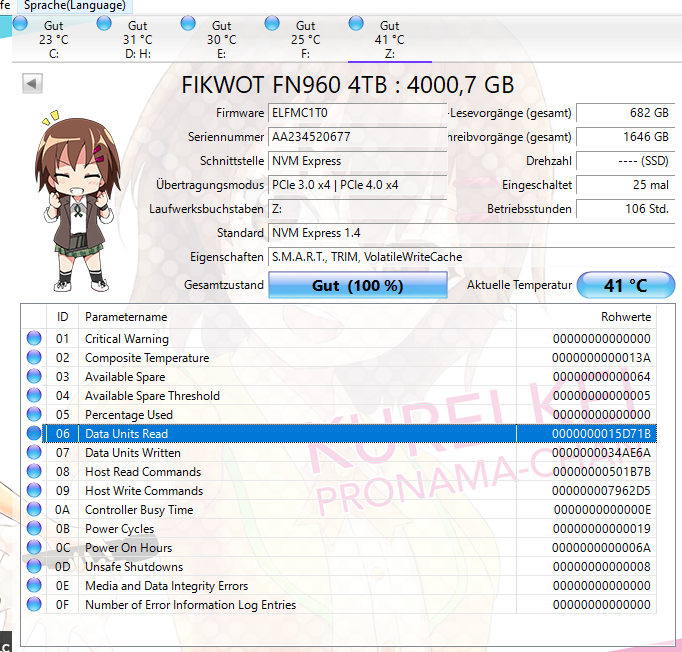 Nun habe ich mir eine neue M.2 SSD (NVME) zugelegt undzwar die Fikwot Fn960 4TB.
