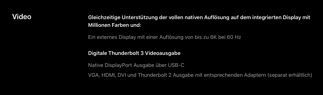 Ich denke die Angabe ist einfach noch unvollständig. Beim Intel-Modell erwähnen sie ja auch 10bit Farbtiefe und alternativ auch 5K. Wenn das neue Macbook jetzt nicht mal das Pro Display XDR mit 10bit ansteuern kann, wäre das schon ziemlich enttäuschend. Aber mal sehen.