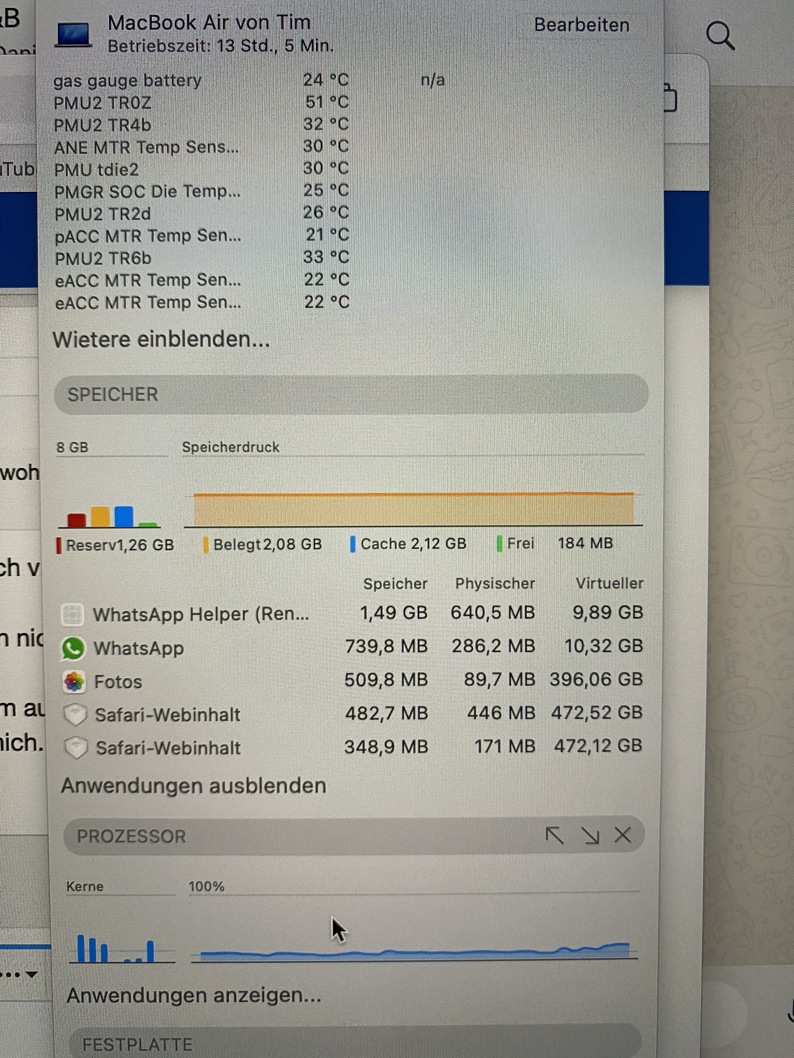 Habe Safari mit 10 Tabs geöffnet. WhatsApp, Mail auf. Ansonsten nicht viel.