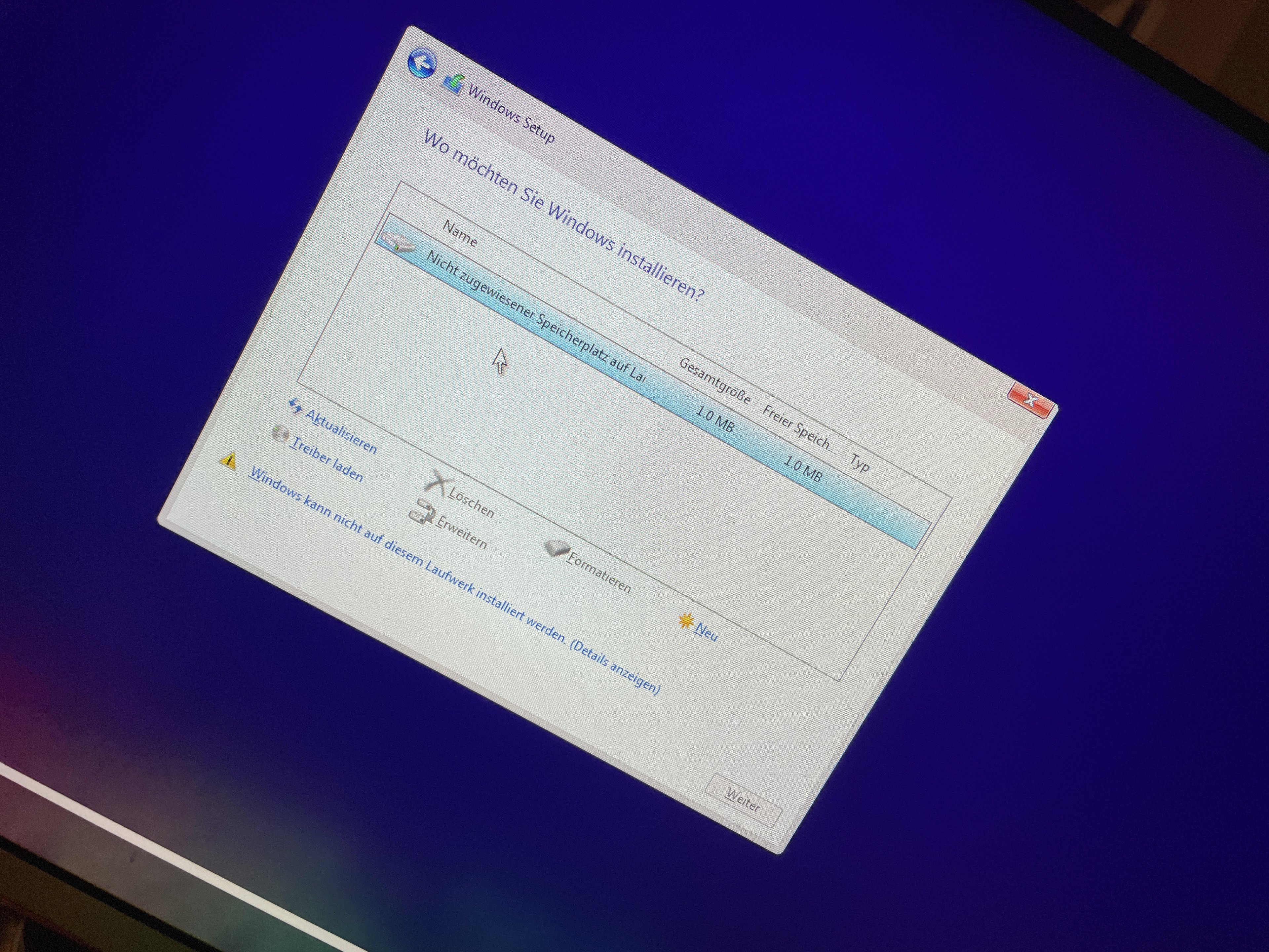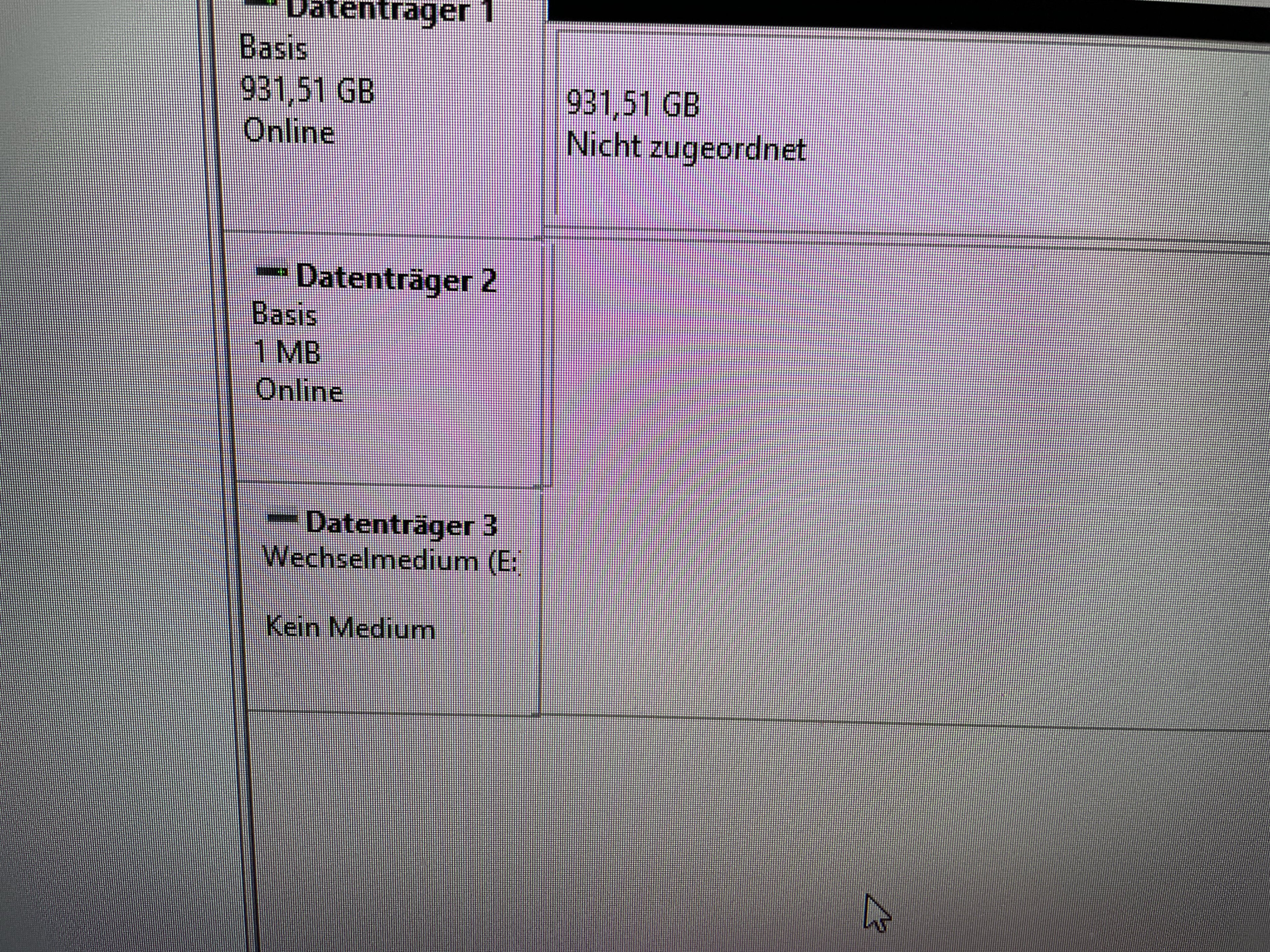 Dass alles lief auch recht gut, nur erkennt Windows diese Platte in der Datenträgerverwaltung nur mit 1MB.