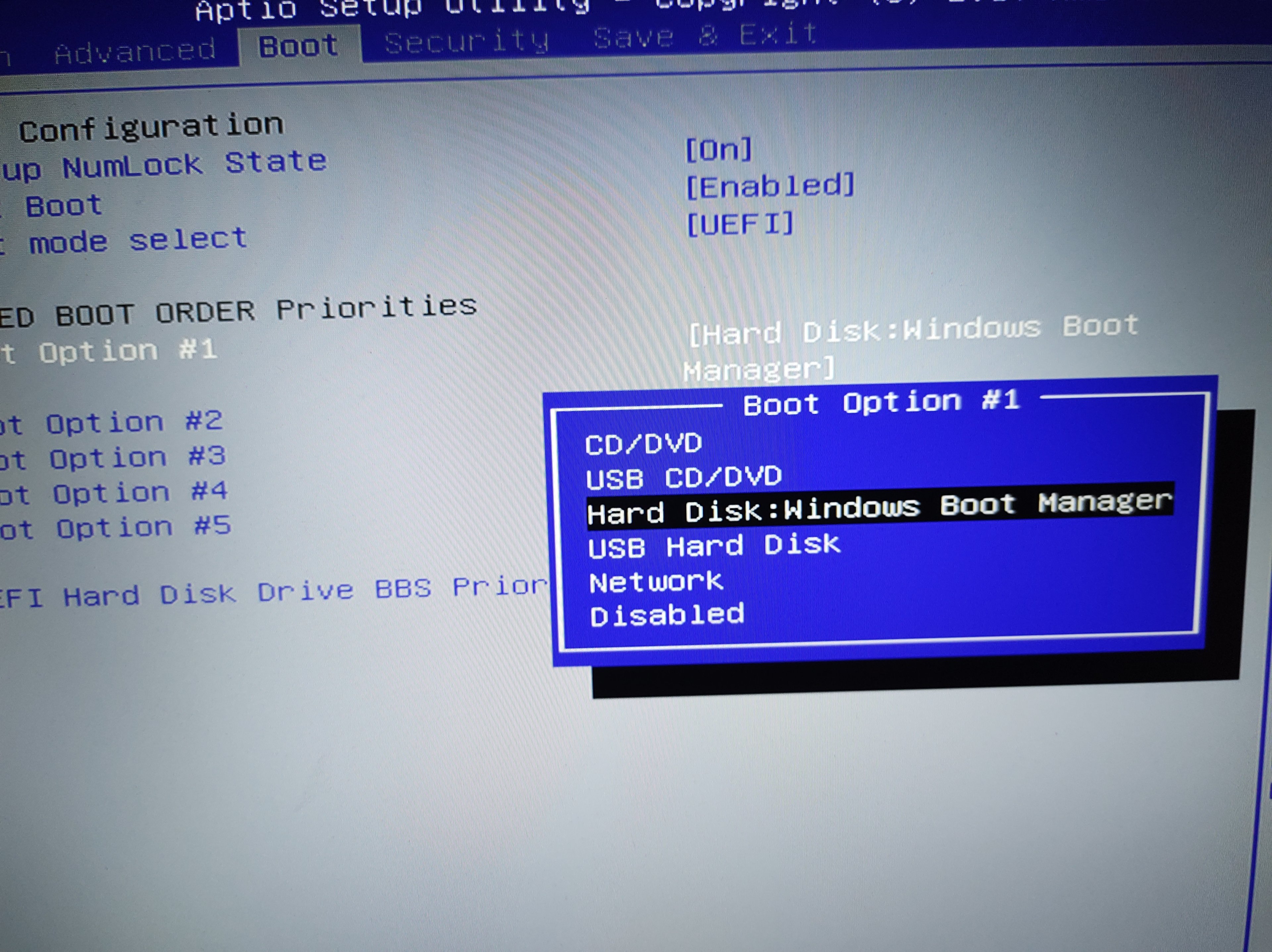 Im BIOS ist es mir jedoch nicht möglich die SSD zu finden und entsprechend als "#1 Option" im Boot Menü auszuwählen. Dort wird mir neben DVD/CD-Laufwerken nur die "Hard Disk" angezeigt, welche offensichtlich meine "alte" HDD ist, und der "Windows Boot Manager" - keine SSD.