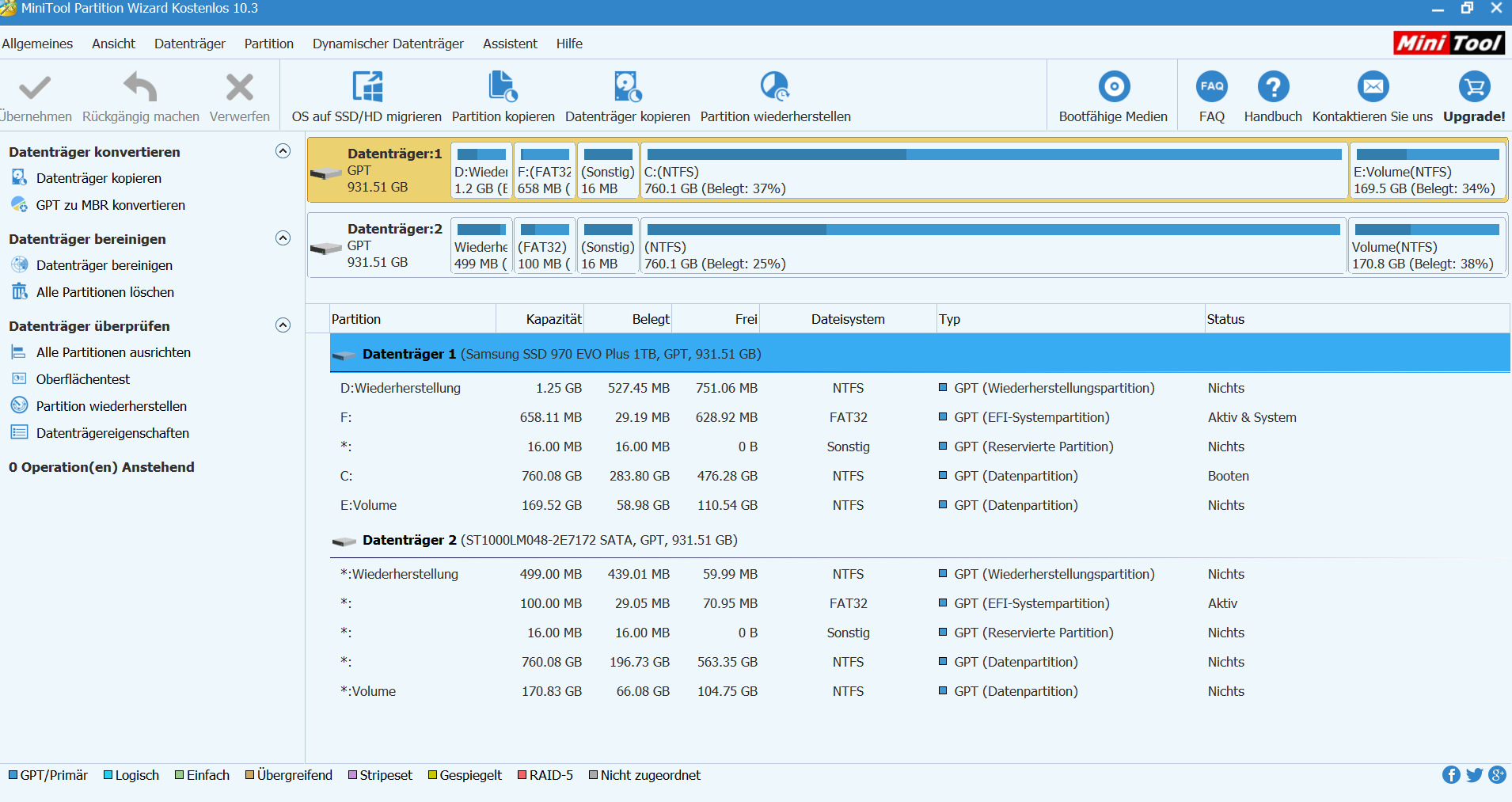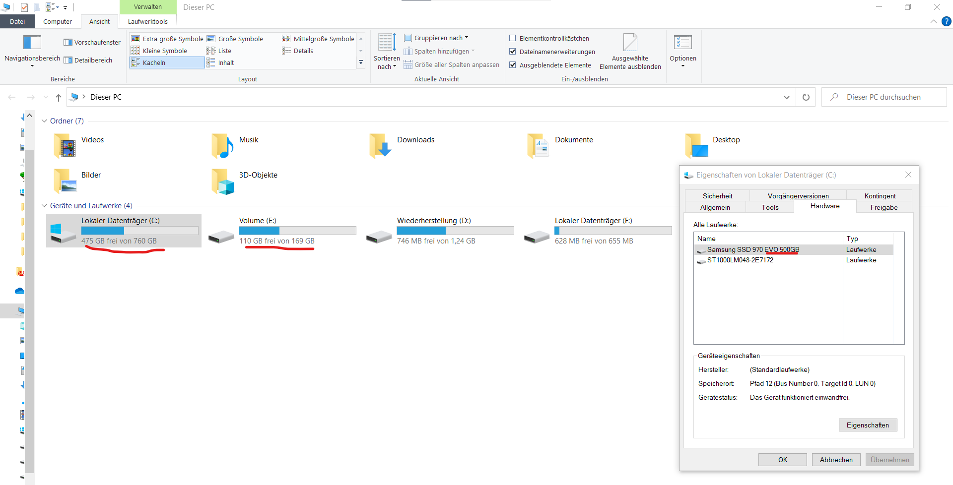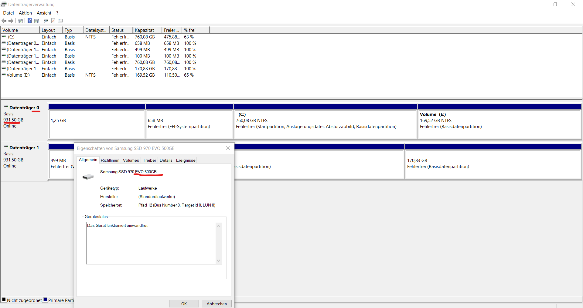 Nun kann ich aber über Windows weiterhin "normal" auf die SSD zugreifen. Sie wird im Geräte-Manager angezeigt, ebenso in der Datenträgerverwaltung. Im Explorer werden mir die einzelnen Partitionen der SSD auch angezeigt und ich kann auf diese zugreifen.