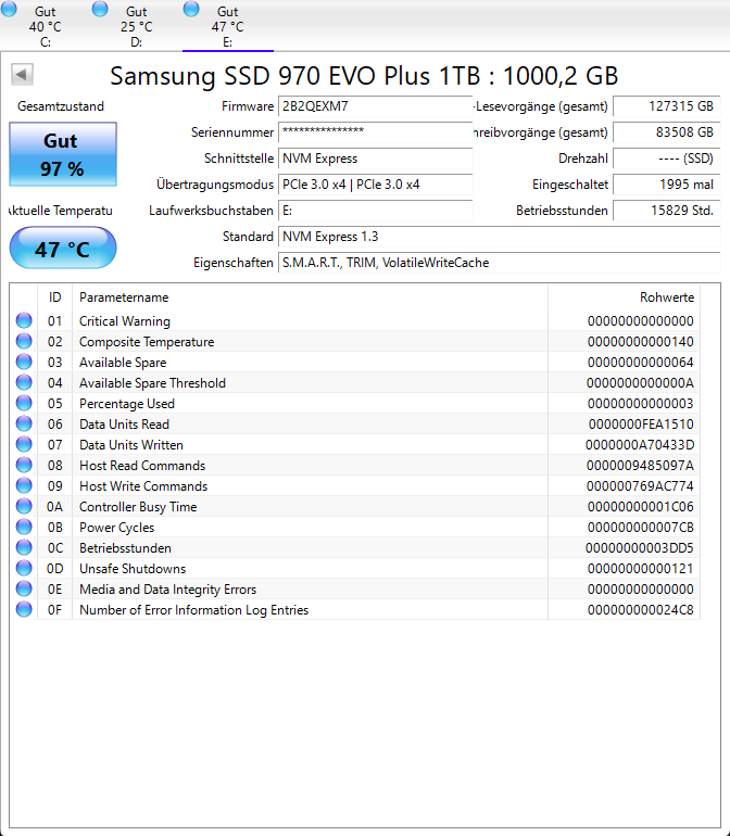 Oder die Platte wird einfach viel zu heiß und drosselt gnadenlos. Kühlkörper drauf? Schutzfolie vom Wärmeleitpad abgezogen? Gern auch mal ein bild vom Rechner. so eine 3080 heizt ja doch etwa. Bitte mal die SMART werte aller Platten posten und diskmark der Problemplatte. vielleicht werden wir dann schlauer.