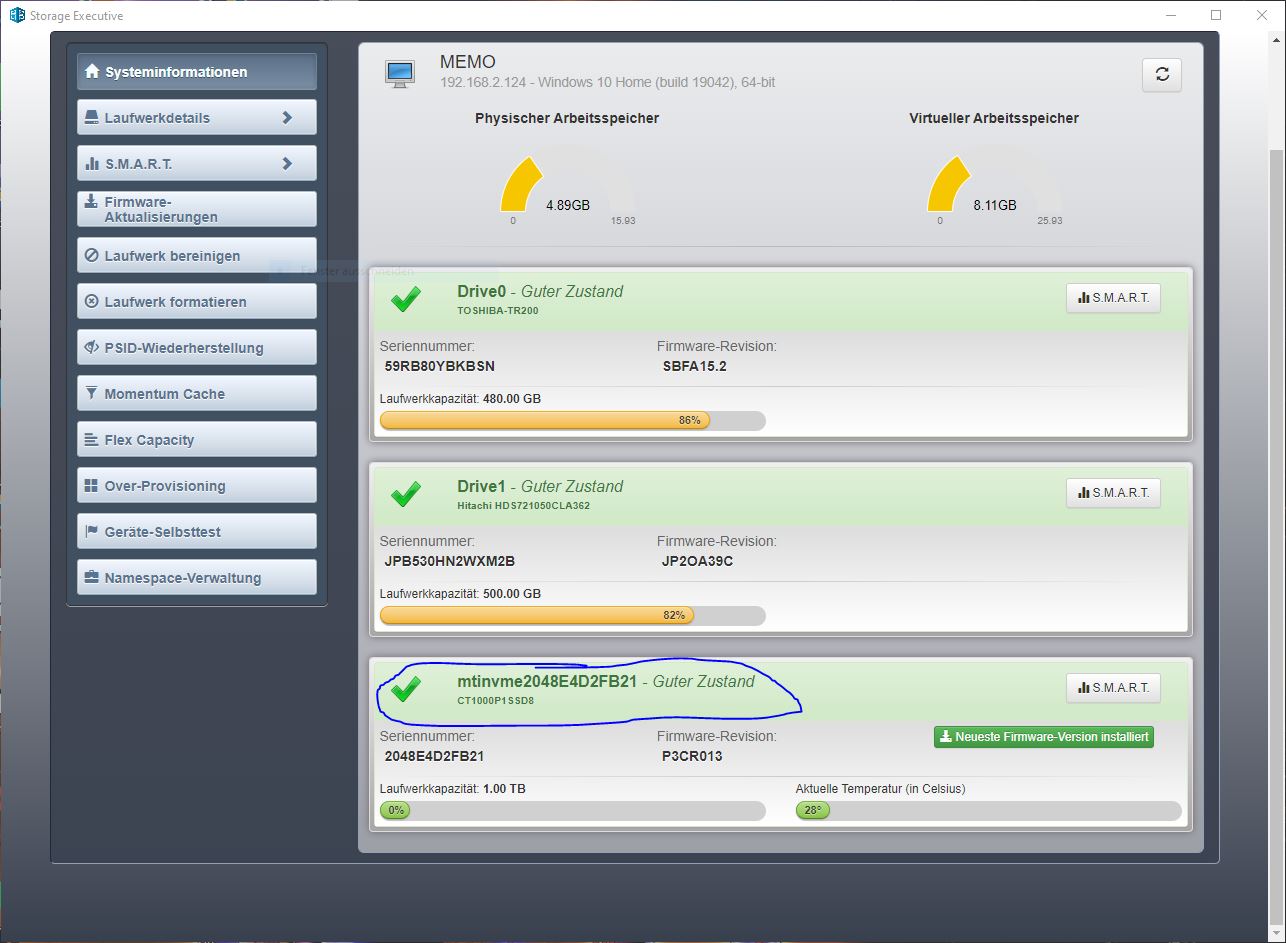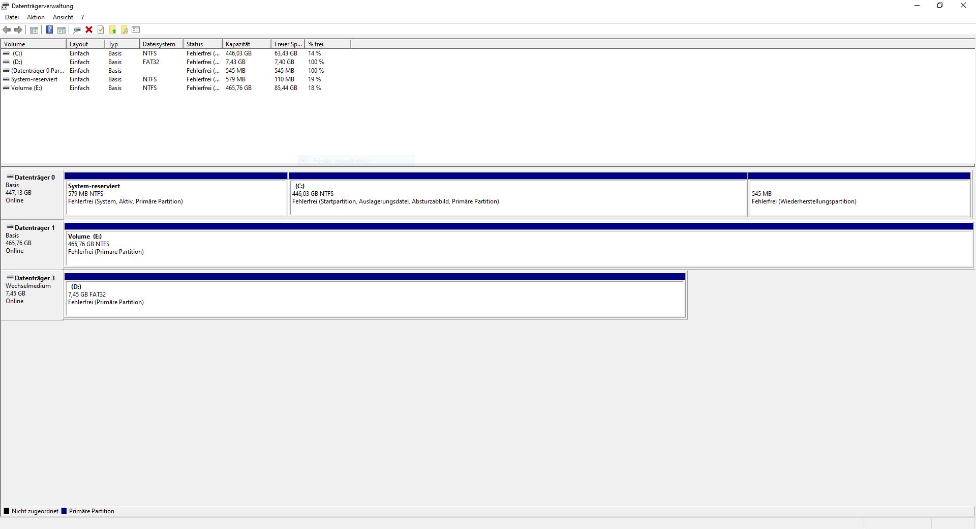 Im Datenträgerverwaltung wird sie nicht angezeigt & als ich Win10 auf M2 installieren wollte, war sie auch nicht dort gelistet nur HDD & SSD. Hier 2 Bilder