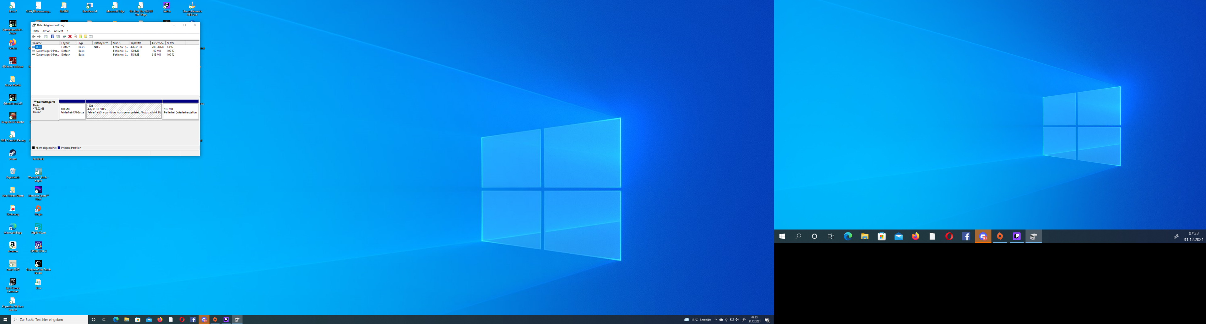 In der Datenträgerverwaltung gibt es ausser der c Festplatte auch nichts. Also auch kein nicht formatierter nicht zugeordneter Bereich... Garnichts ausser C.