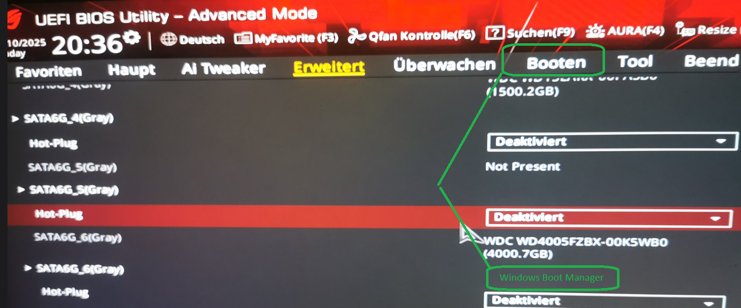 Nun ist mein Win 10 natürlich veraltet und um dieses auf Win 11 updaten zu können muss ich "UEFI" aktivieren und dann erkennt das BIOS meine Seagate im bootmenü nicht mehr.