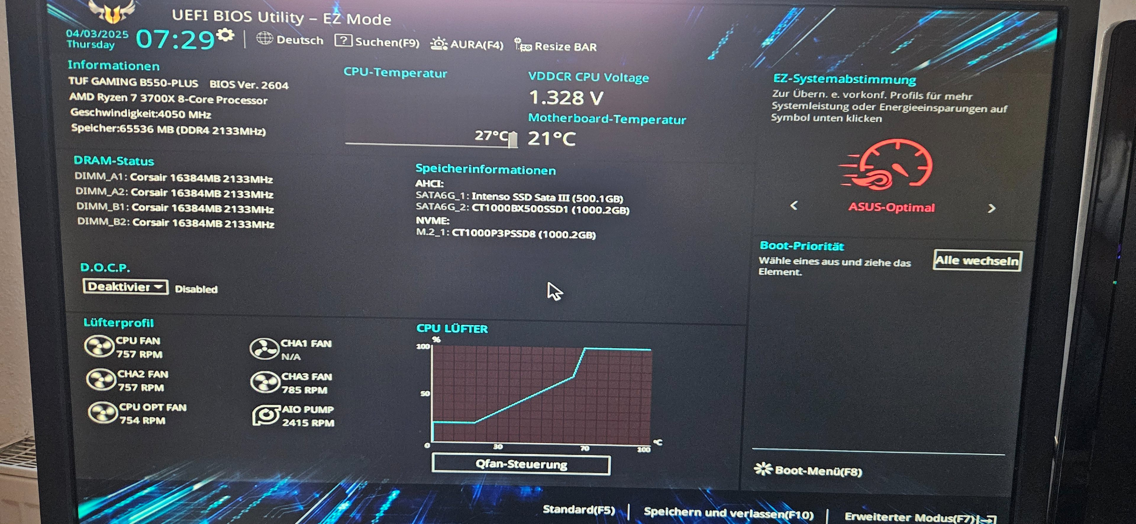 Windows ist auf der Curcial p3 plus das maindboard ist ein Asus tuf gaming b550 Plus