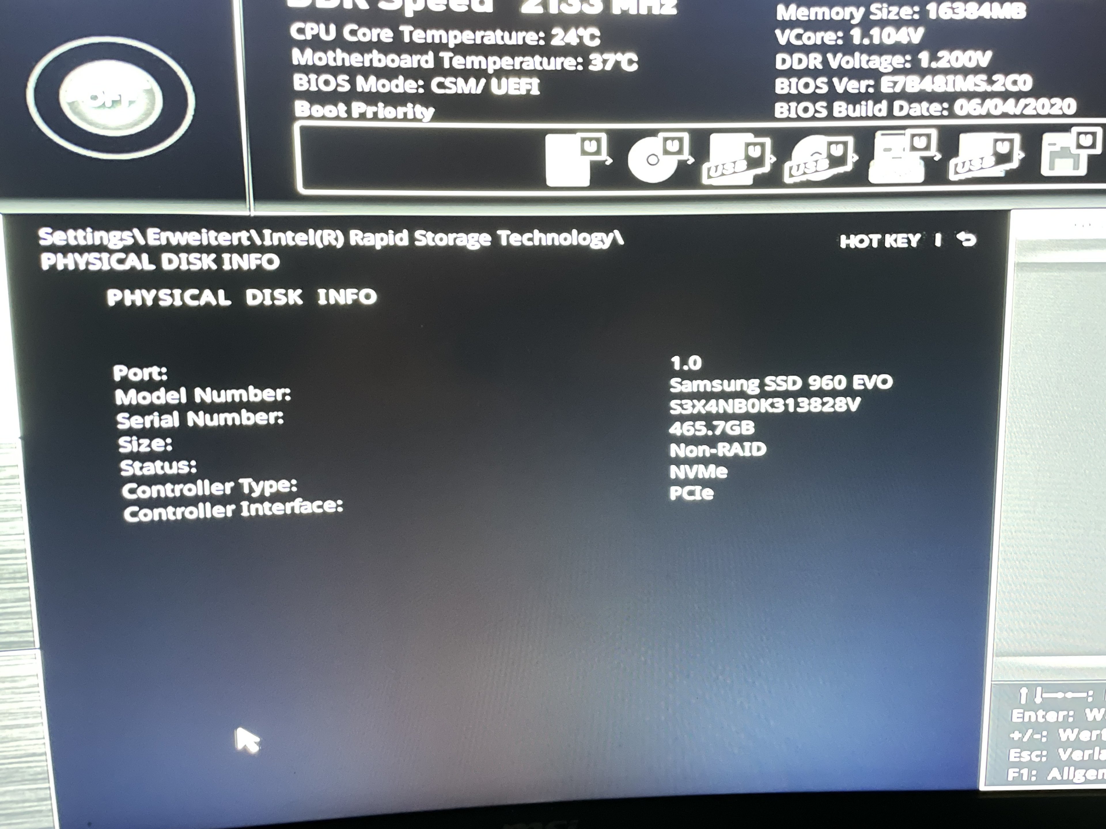 CMOS Reset und ein Update vom BIOS haben leider nichts gebracht. Ich habe die SSD auch schon ausgebaut, gewartet und wieder eingebaut, was auch nicht verändert hat.