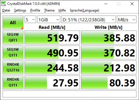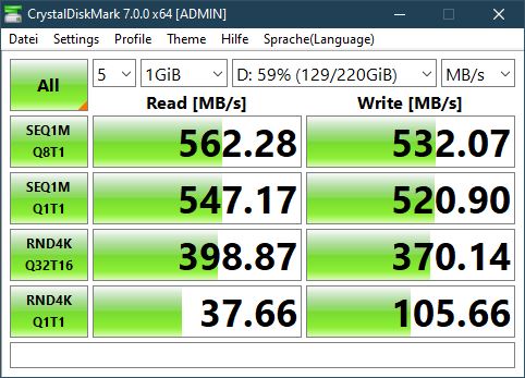 Habe jetzt mal eine 08/15-Micron-SATA-SSD angeklemmt und zum Vergleich gebenched, die ist insbesondere bei den Random-Werten massiv besser, außerdem kenne ich das obige Problem von anderen PCs nicht.