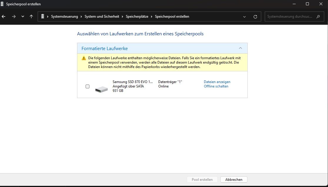 Wählen Sie Einstellungen ändern > Physische Laufwerke aus, um alle Laufwerke im Pool anzuzeigen.