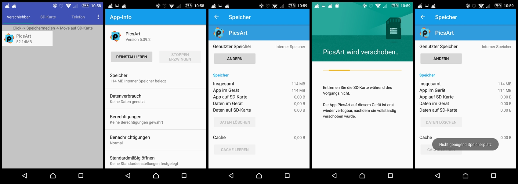 Das Handy fängt das Verschieben der Apps an und sagt dann z.b: 2 von 3 Apps konnten nicht übertragen werden. Also es erkennt das es theoretisch möglich wäre diese Apps überhaupt zu verschieben, also es ist nicht unmöglich (die Apps sind Picsart und Pokemon Go). Es zeigt immer an das diese Apps verschiebbar sind, aber dann bricht es das ab.