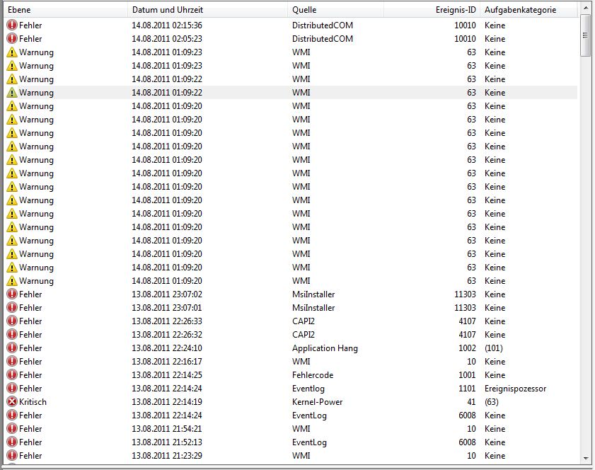 Hier die ersten ~150 Ereignisse aus der Anzeige, konnte nicht alle anhängen.