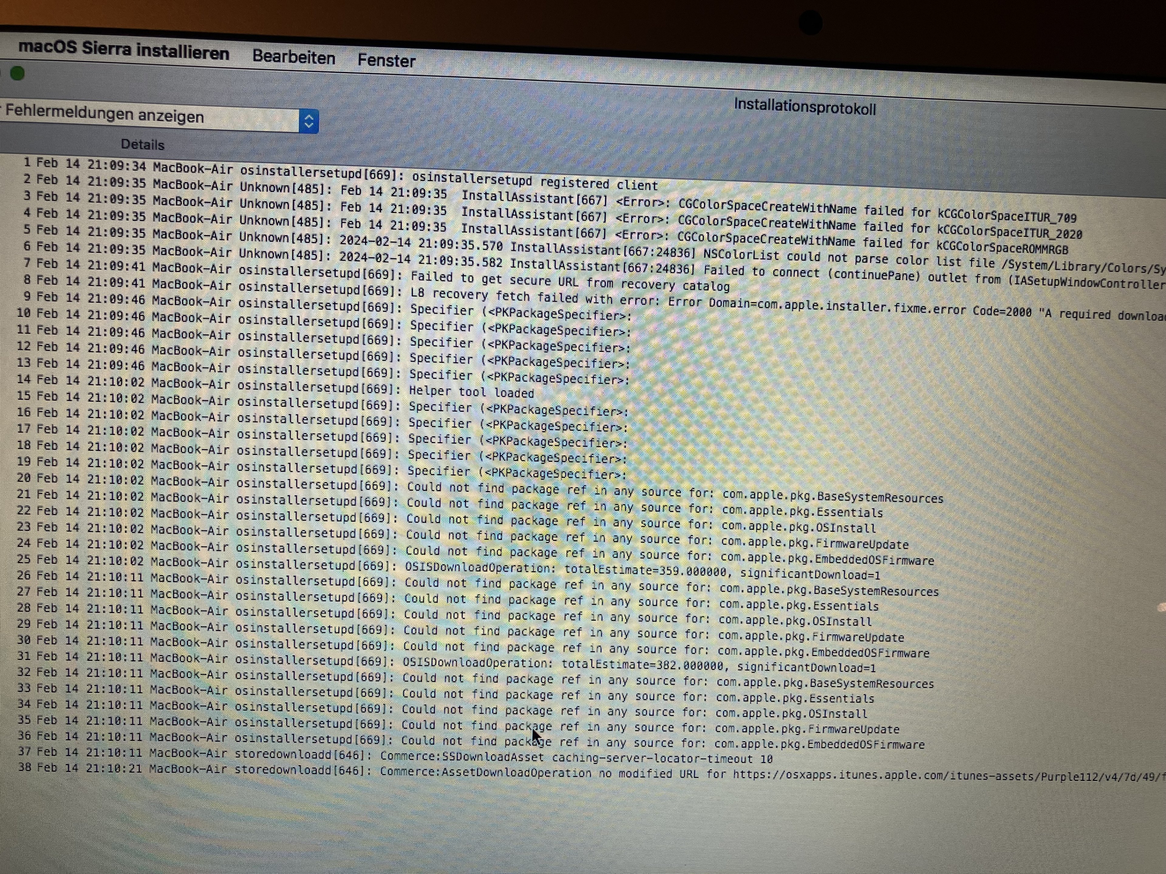 ich habe ein Problem mit meinem Mac Book Air 2015 (A1466) EMC 2925 (Sierra oder HighSierra)12.6.03