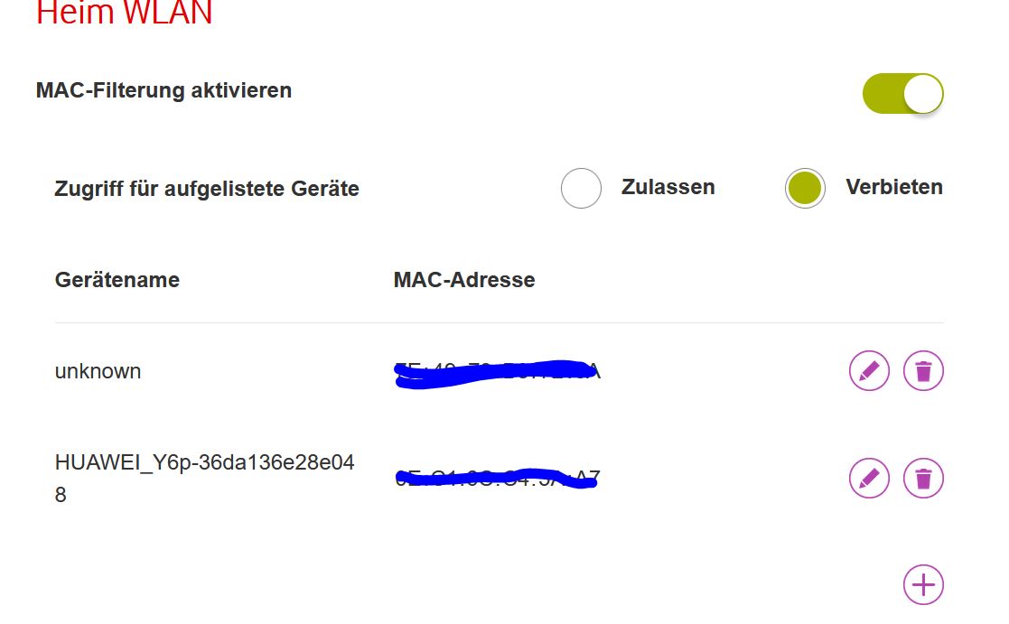 Ich habe den MAC Filter in meine Vodafone router seite um den Handy von meine stieftochter (gerade 13) in die Nachts zu sperren oder an die Tagen wo sie viel zu viel auf Internet ist. Leider funktioniert das irgendwie nicht. Mir wurde gesagt dass sie hat Freunden, die irgendwie 'Häcker' sind und sie kann sich selber entsperren. Das kann ich mir nicht vorstellen weil , wenn ich die MAC Addresse, aus meinem Router blockiere , dann hat sie ''theoretisch'' keine Internet von meine Router... Die Frage ist , von wo oder wie hat sie dann die Internet trotz die MAC Filter Blockierung..
