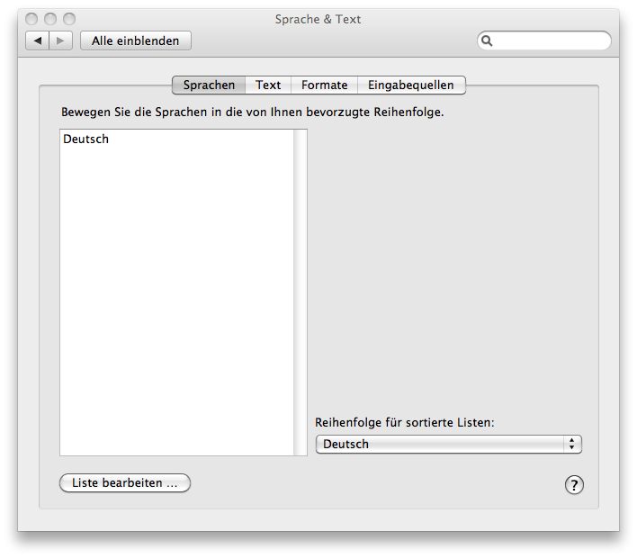 Das Snow Leopard wurde auf italienisch installiert und ich habe es jetzt in den Einstellungen auf deutsch geändert. Das hat eigentlich ganz gut funktioniert nur sind ein par kleine Sachen immer noch auf italienisch. z.B. ist die Firefox Lesezeichen-Leiste auf italienisch und bei jedem Start des Mac OS-X, sind beim Loginfenster der die unteren beiden buttons noch auf italienisch.