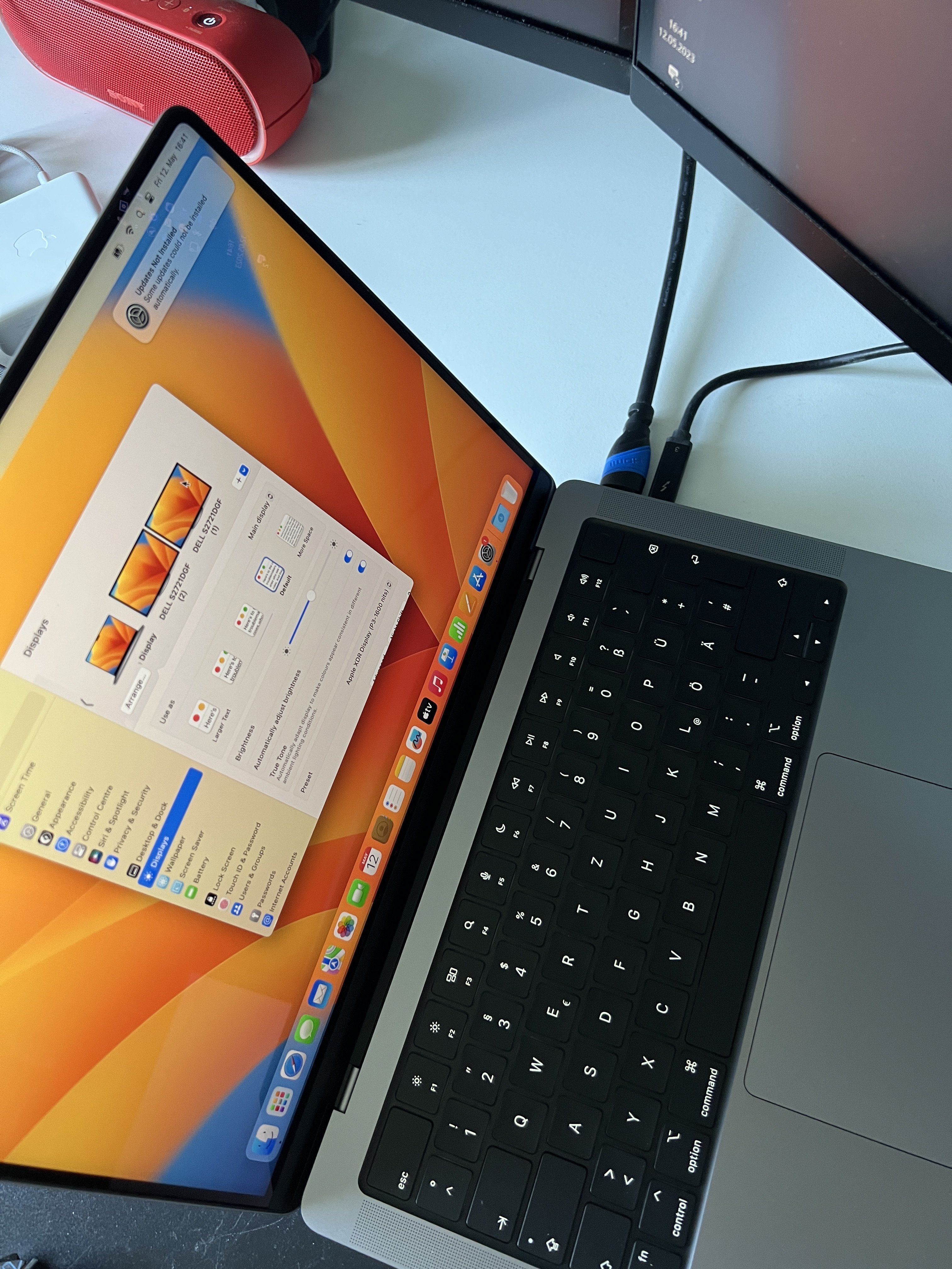 ich habe von meiner Arbeitsstelle ein Macbook Pro 14" (M2) bekommen. Da ich zu 100% im HomeOffice hatte ich mir vor ca. 2 Jahren drei Dell S2721DGF Monitore gekauft die ich u.a. mit dem Macbook nutzen möchte.