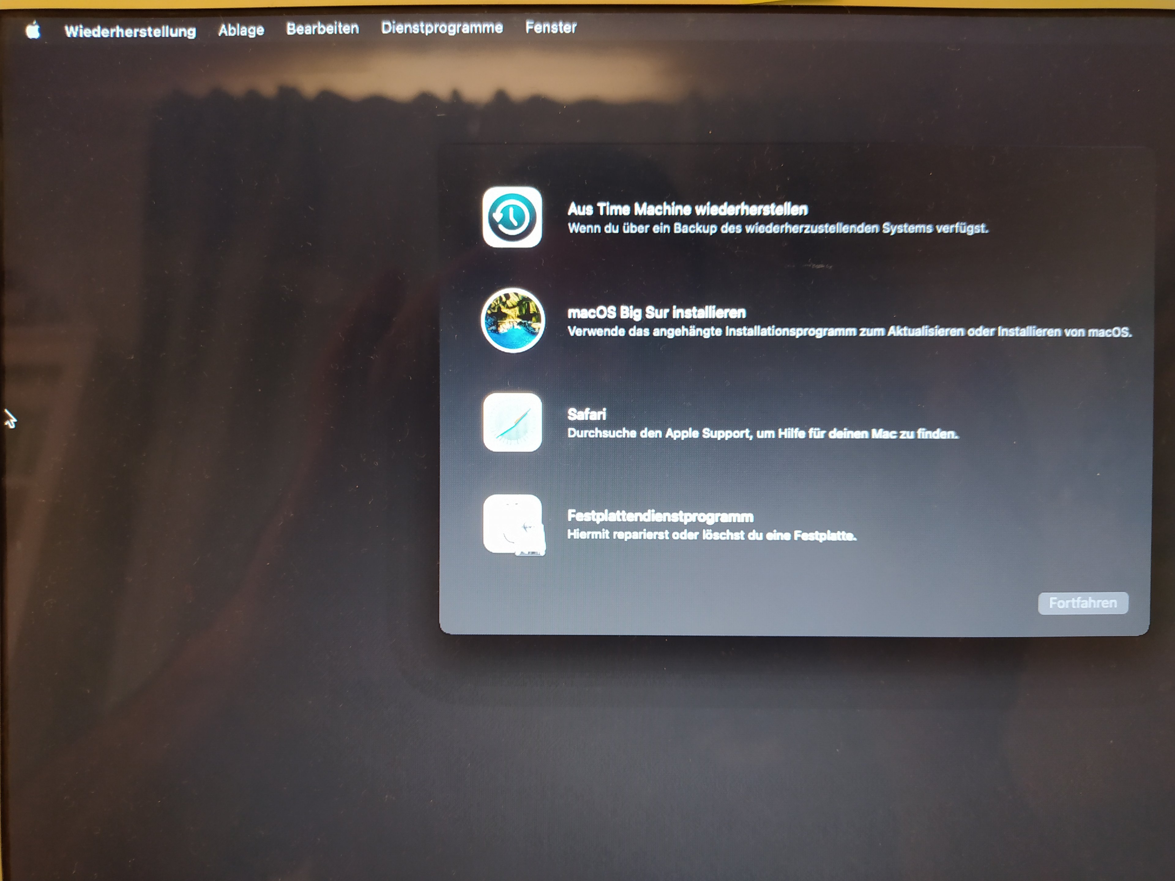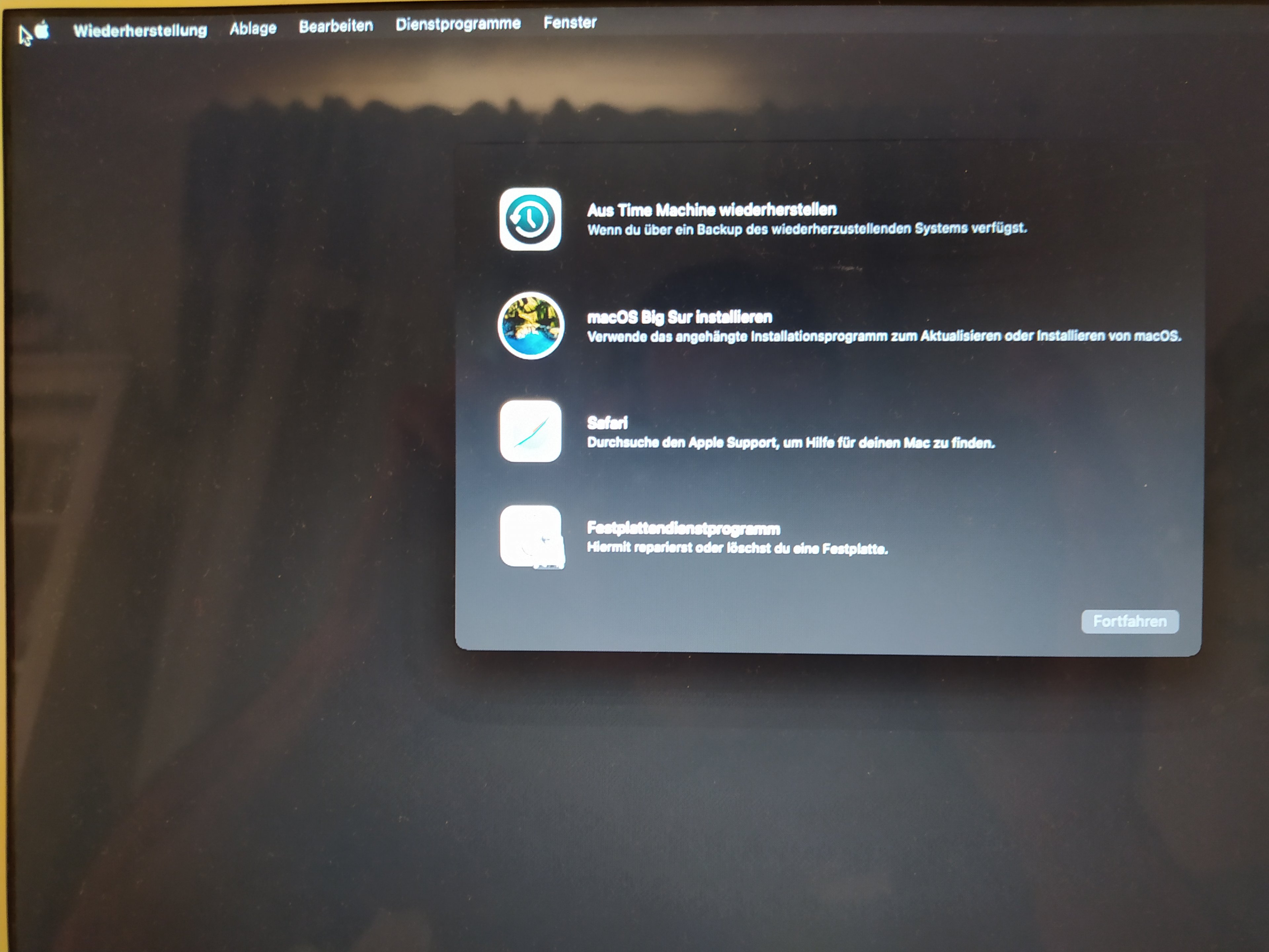 Wenn du nicht CMD + R gedrückt hast, bist du nicht in der Recovery