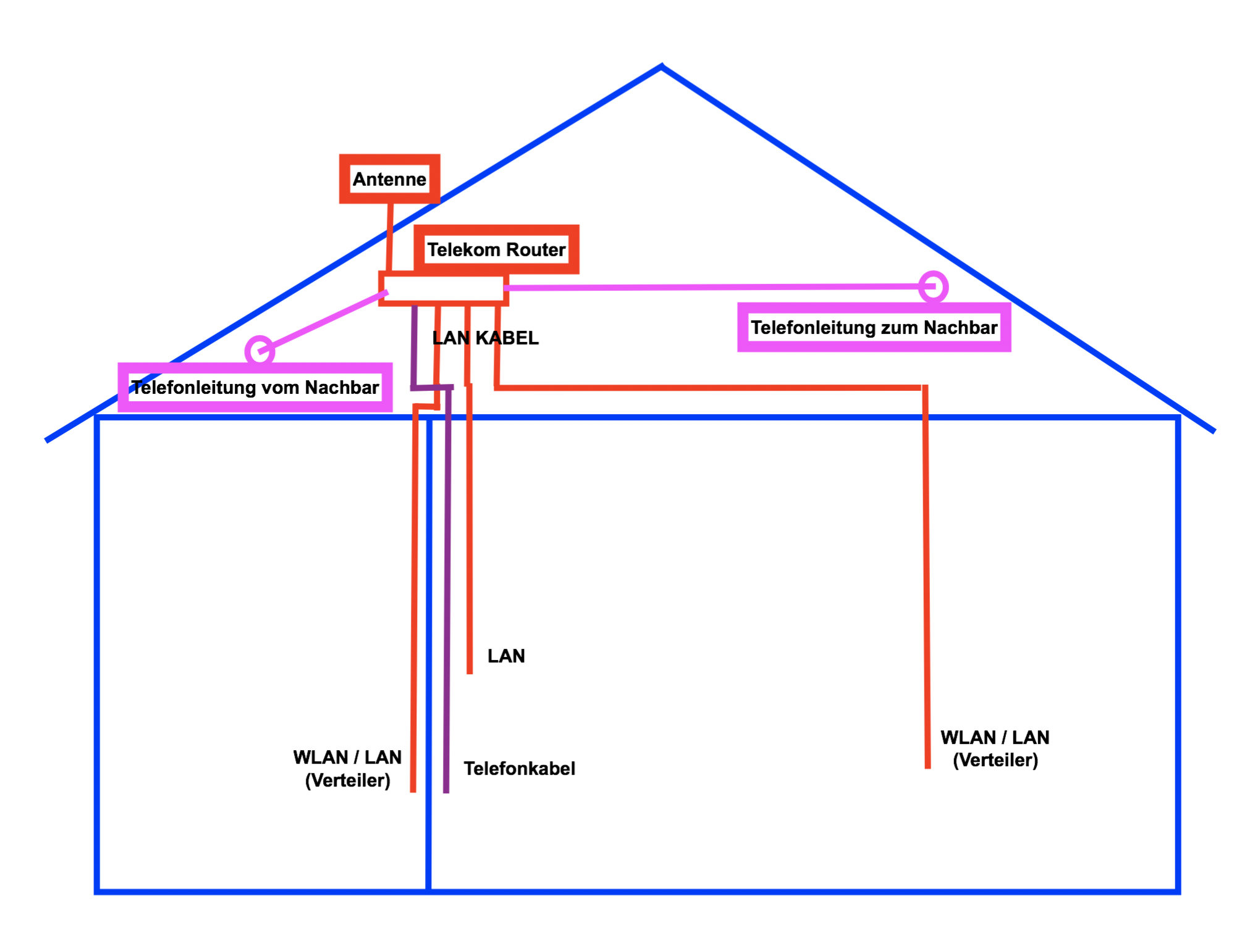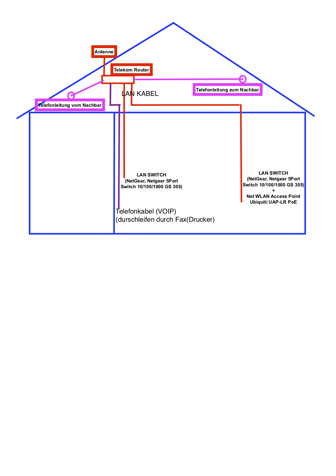 Da komme ich auch schon zu meiner Frage: Ich möchte mein Netzwerk dahingehend erweitern dass ich das Modem der Telekom am Dachboden stehen habe (weil dort ja auch der Empfang und die Telefondose hinkommt) und von dort aus mittels Lan Kabel die relevanten Räume meines Hauses mit Internet versorge. Das Telekom Modem hat 4 LAN Ausgänge. Davon würde ich 3 nutzen um in verschiedene Räume zu gehen und dort Verteiler bzw. WLAN Access Points aufzustellen: