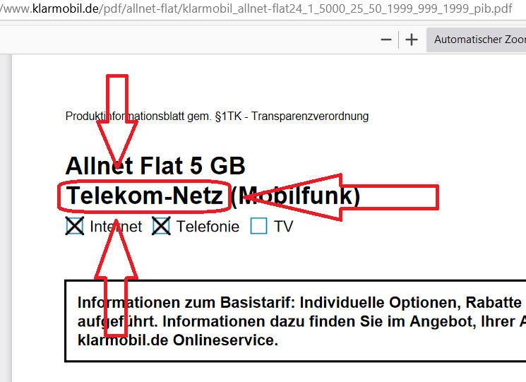 Und dann auf Produktinformationsblatt. Aktuell scheint es bei allen drei die Telekom zu sein.