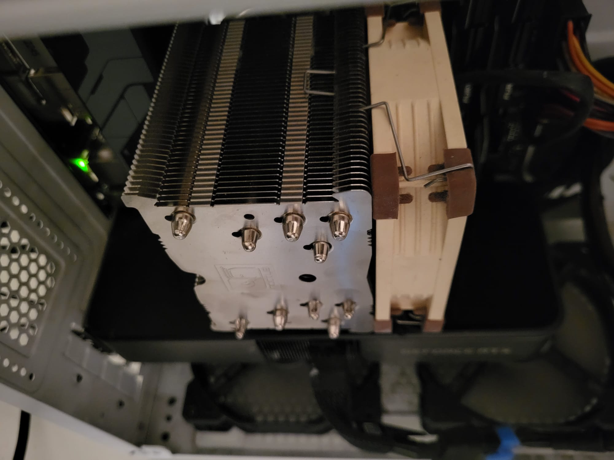 Warum ist der Lüfter falsch herum auf dem CPU Kühler? Der soll durch den Kühler drücken und nicht ziehen! Wo hast du diesen denn eigentlich angeschlossen, weil sich das Kabel da so spannt?