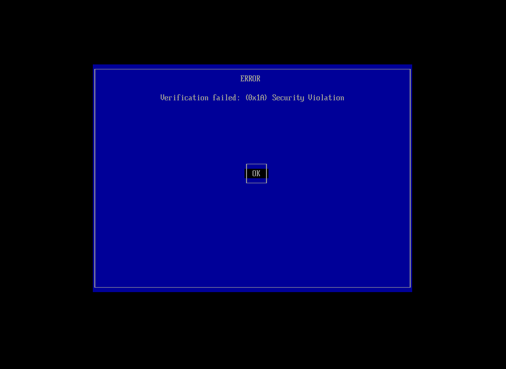 ERROR Verification failed (0x1A) Security Violation: mit OK bestätigen