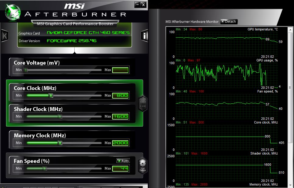 Mit den Einstellungen mit den meine Karte bei Just Cause 2 88 Grad erreicht, kommt sie bei Mafia 2 vielleicht auf 75 Grad. Sieht man aber auch schön im MSI AB an der Auslastungskurve der Graka ! Eigentlich sollte die Graka richtig zu Ackern haben, tut sie aber nicht.