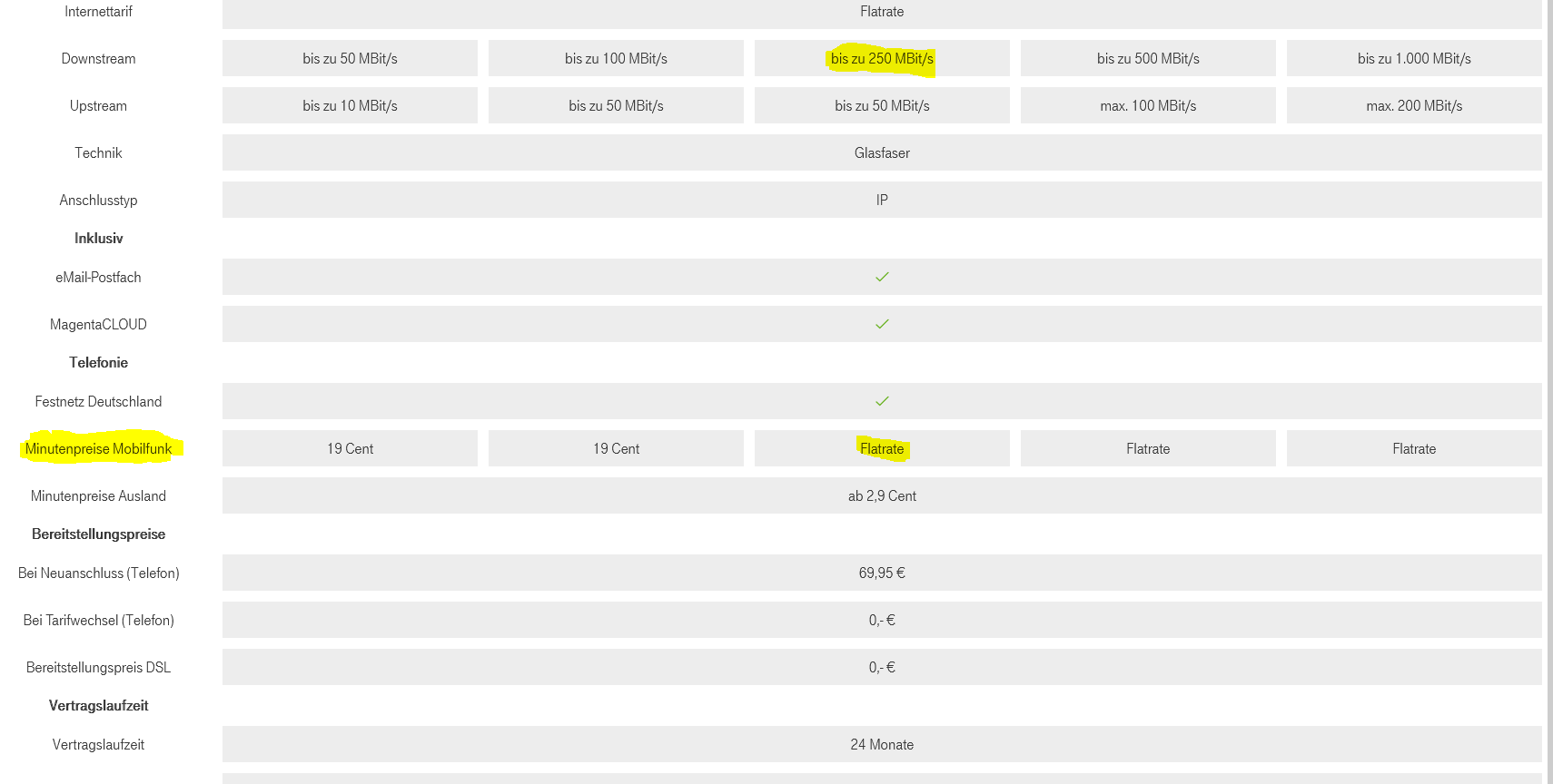 Der Vertrag war mit den Festnetzvertrag verknüpft und ich hatte den Magenta 1 Vorteil (Flat in alle Mobilfunknetze).