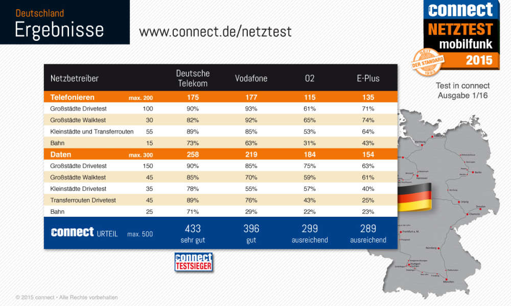 Ja und wenn man sich die Connect Wochen Tests oder Monats Test anguckt, dann schaut es bei O2 gar nicht so schlecht aus.