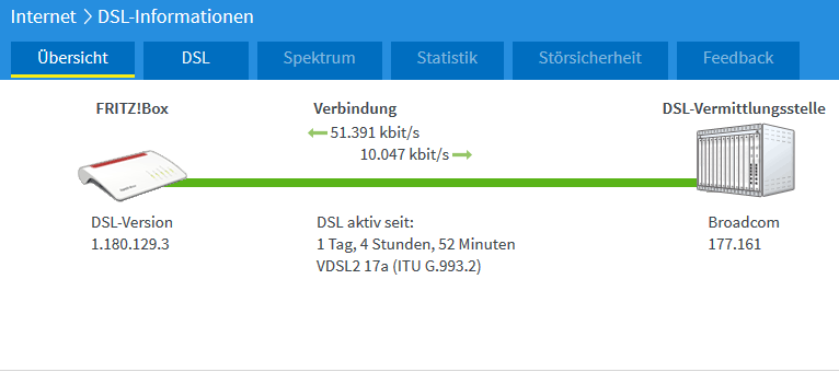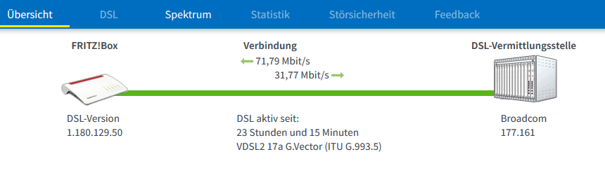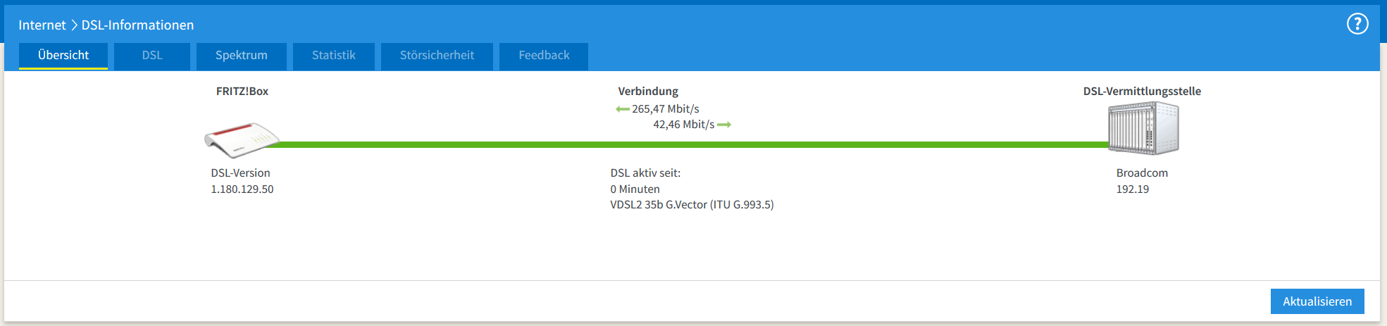 DeusoftheWired schrieb:@Amusens Da hat man einfach was Vectoringfähiges eingebaut. Bitte mal einen Screenshot des FRITZ!Box-MenüsInternet → DSL-Informationen → Übersichtund nternet →Internet → DSL-Informationen → DSL