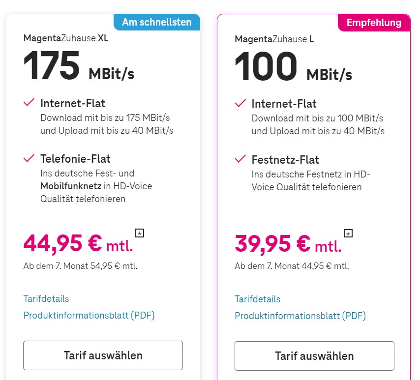 bei uns gab es ja 2020 schon mal den XL-Tarif, den hatte ich auch gebucht, aber von den 175 MBit/s kamen halt nur 123 MBit/s an. Das haben wird dann hier wieder storniert (der Tarif wurde kurz darauf auch wieder aus dem Angebot genommen):