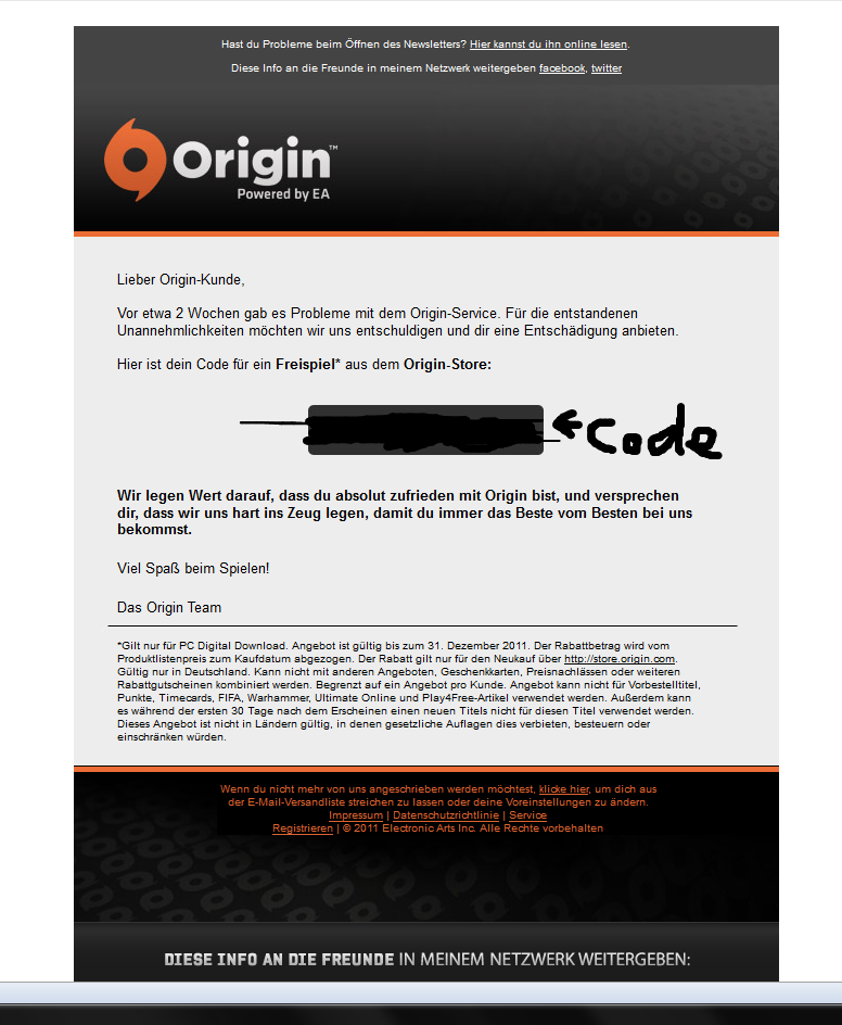 KAnn ich nicht glauben, gerade EA wo an allem verdienen will wird keinen Code verschenken und dann sogar noch für ein Game deiner Wahl. xDD, der war gut :-)
