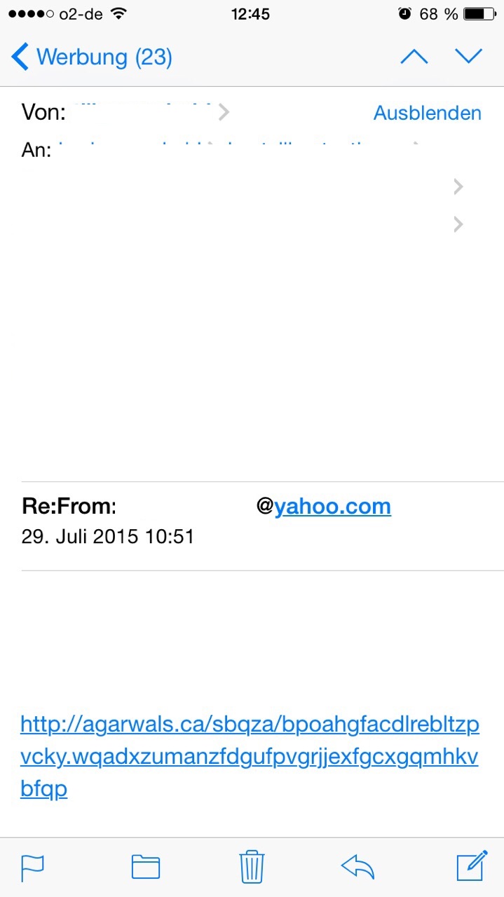 Ich hatte bereits mit Yahoo Kontakt aufgenommen, da es für die ja Rufschädigend ist, wenn dieser Virus auch noch yahoo mit in den Dreck zieht. Yahoo konnte mir jedoch auch nicht helfen, meinten nur, dass das keine Mails von Yahoo sind, da diese eben auf .com enden.
