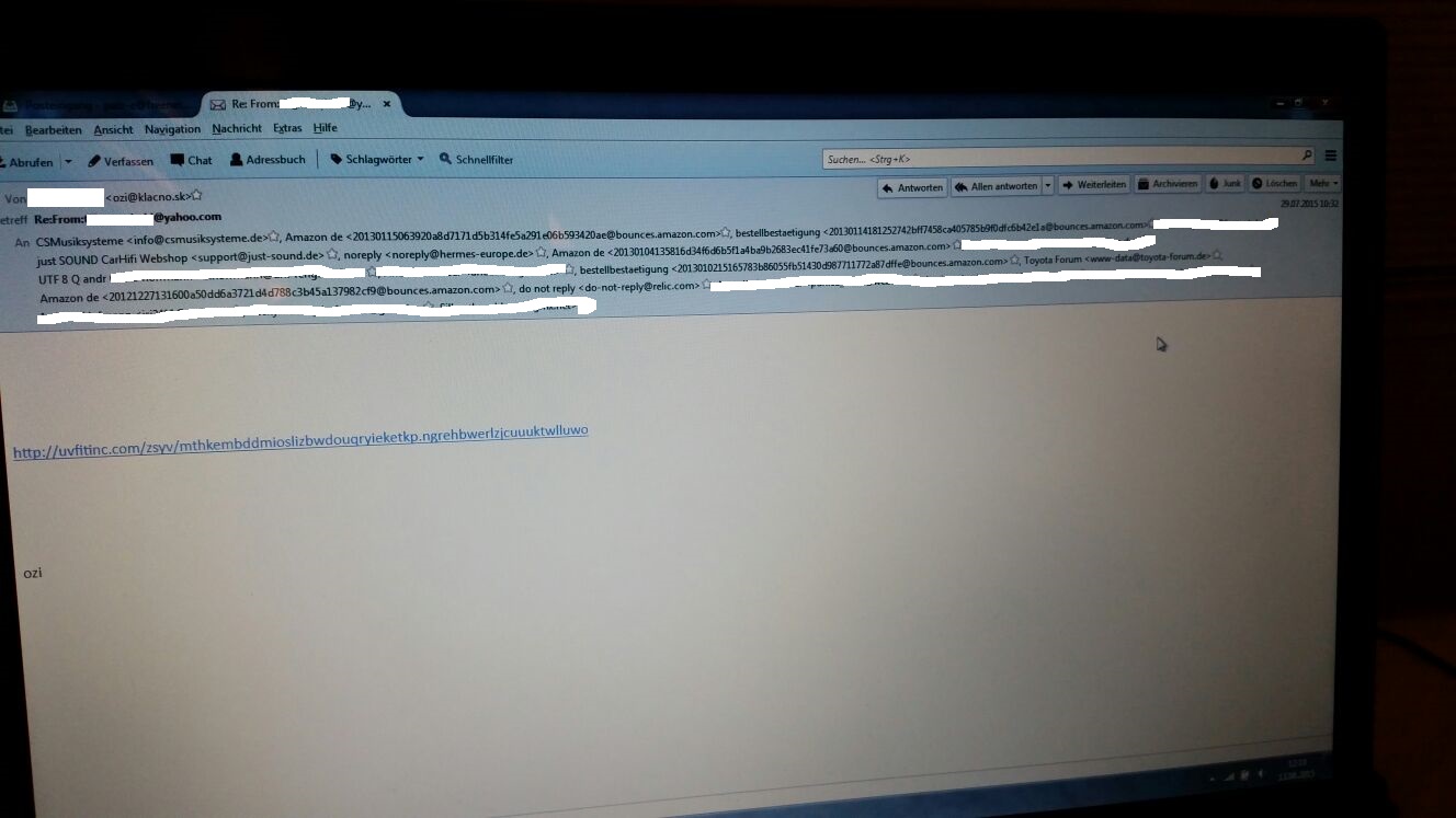Leider weiß ich nicht, wie man dagegen vorgehen kann. Virenscanns habe ich schon laufen lassen, leider jedoch ohne Erfolg. Im Anhang findet ihr eine Beispielmail eines Freundes. Vielleicht erkennt ja jemand anhand des Links die "Quelle des Bösen". Angeklickt habe ich es jedenfalls nicht.