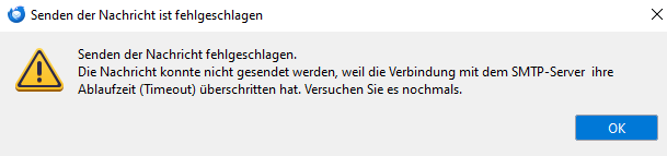 Das hat nichts mit Thunderbird zu tun, Du wirst weiterhin einen Fehler in der Einrichtung der Server haben. Die Meldung sagt ja, dass der Server nicht erreichbar ist.Herolf schrieb:Nun, zur Not kann ich mit dieser Umständlichkeit bei Thunderbird leben.