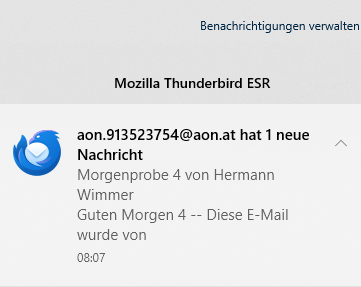 Der Versand dauert also jetzt nur mehr ca. 2 Minuten. Das ist gegenüber gestern ein erheblicher Fortschritt. Allerdings ist mir die Zwischenmeldung „Senden der Nachricht ist fehlgeschlagen“ nicht erklärlich.