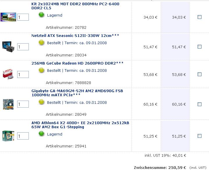 Nun hätte ich gerne nen günstiges Board mit wenn möglich 2 IDE Anschlüssen falls es das noch gibt. Danke dazu an die recht günstige Nvidia 8400 GS für ca 40 €!